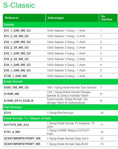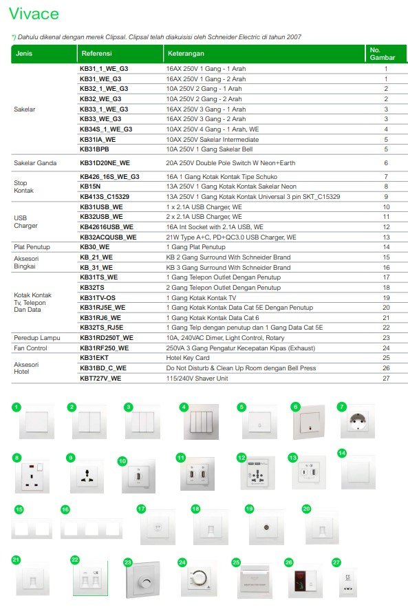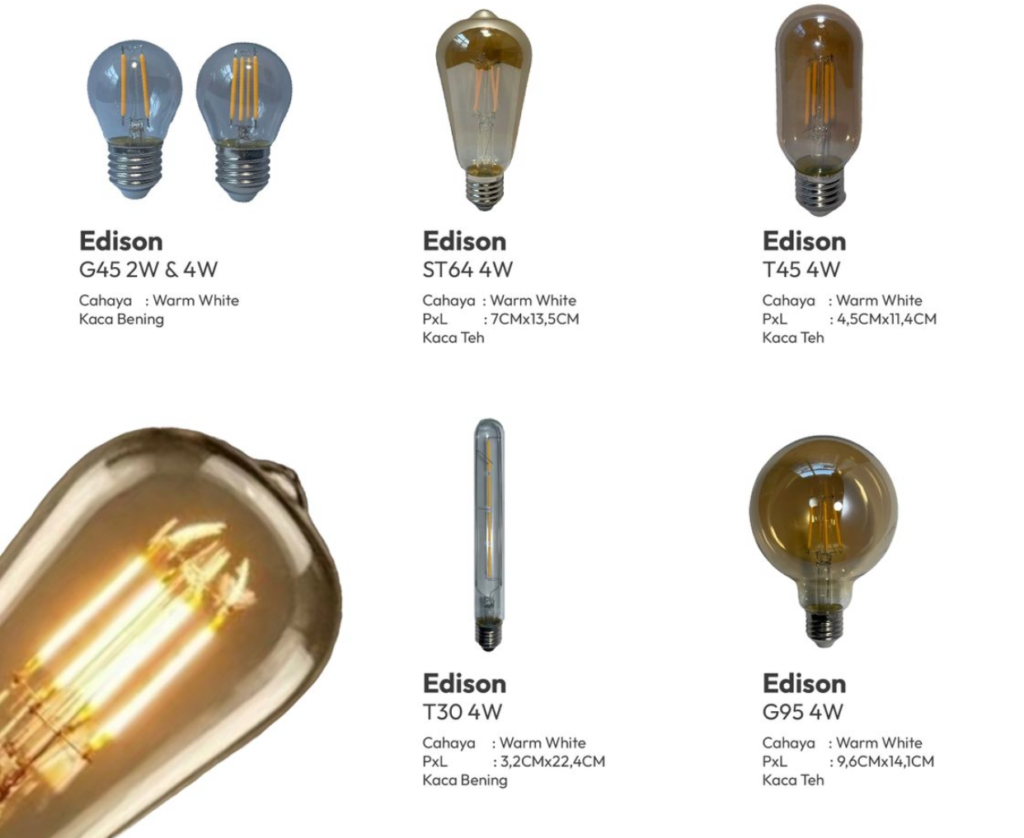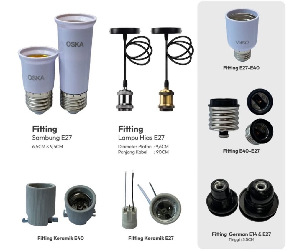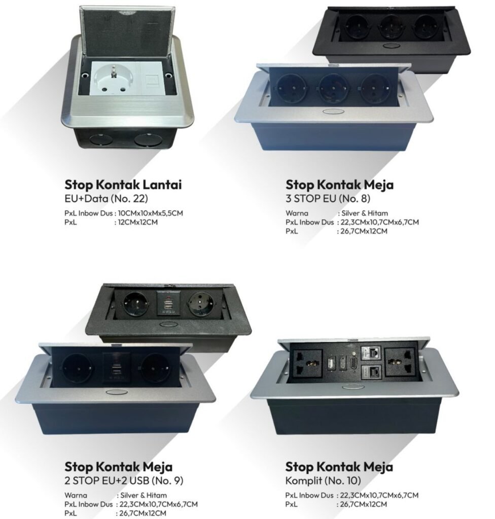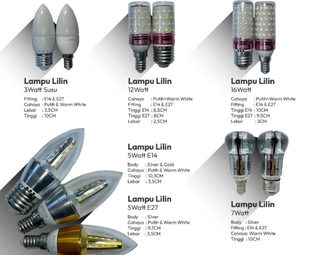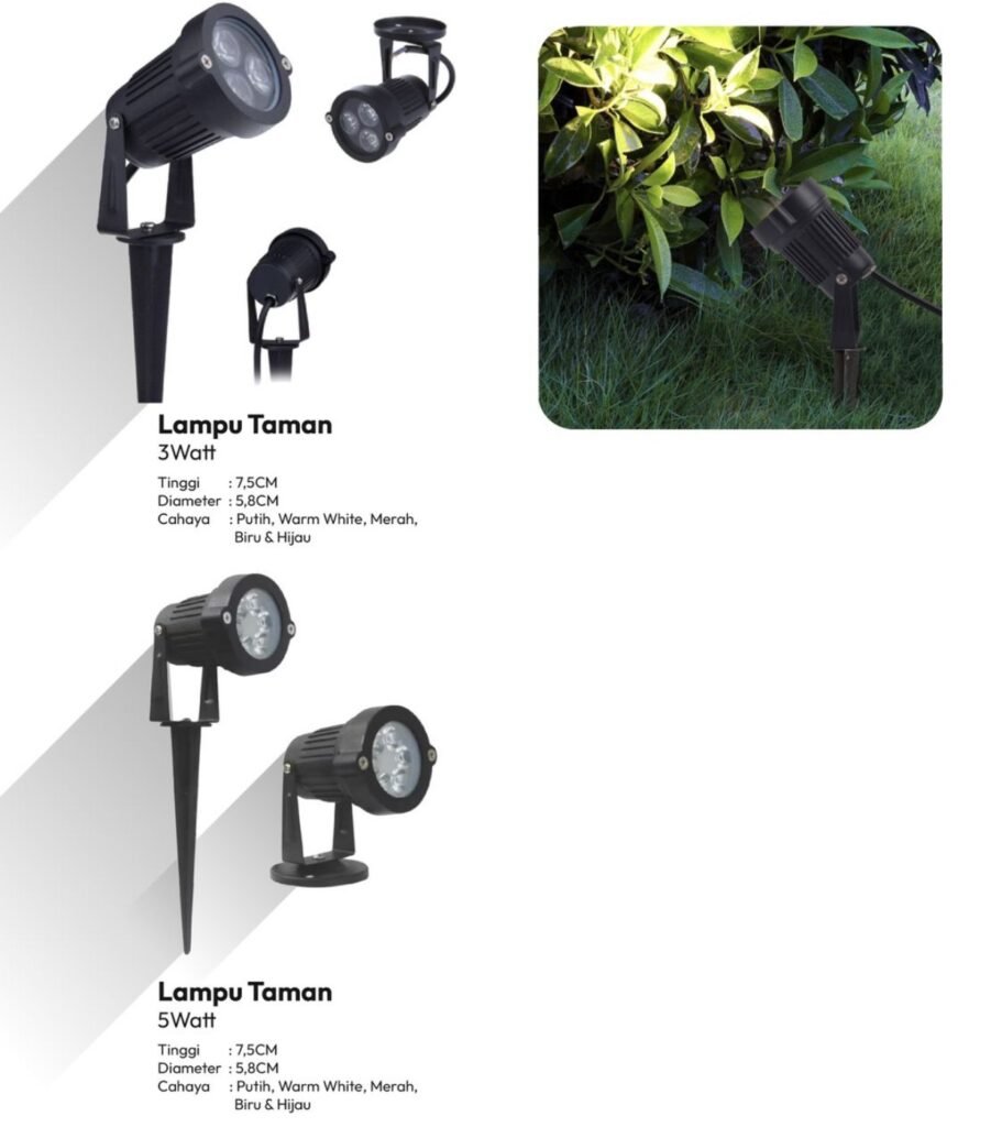 Produk lengkap: Berbagai jenis lampu, kabel, stop kontak, saklar, box MCB, power supply, LED strip, downlight, fitting lampu, kabel duct / TC, solasi listrik, pipa listrik, tespen, perkakas (tang, obeng, palu), sanitary (kran wastafel, bidet), baterai, dan lainnya.