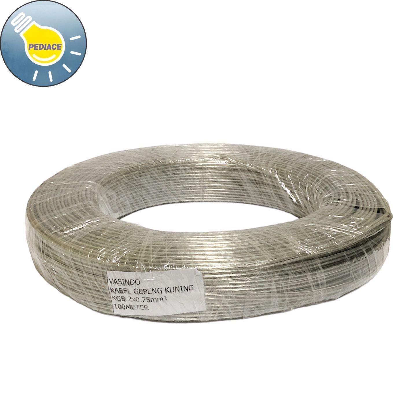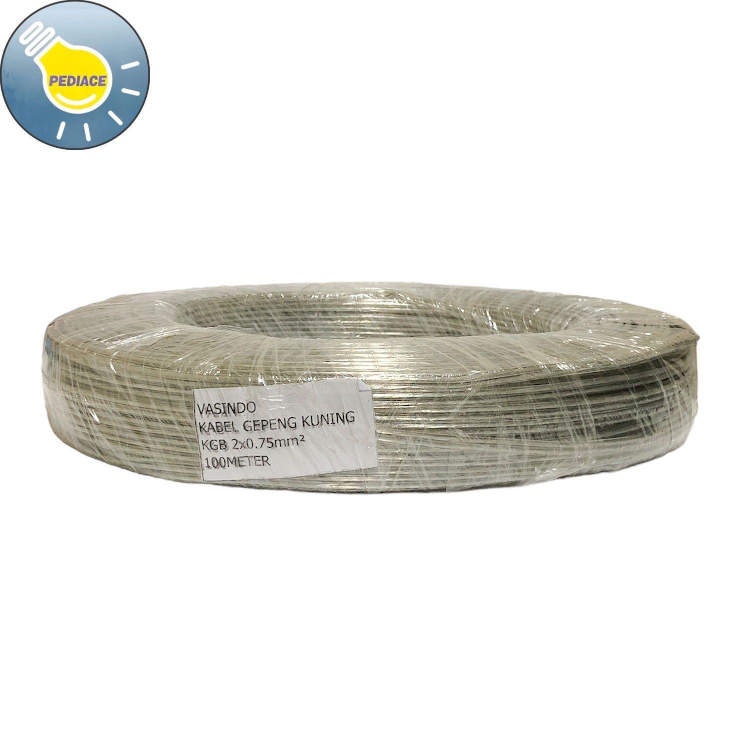 Kabel Gepeng Kuning KGB 2 x 0.75 mm VASINDO H03VVH-2F 1 Roll 100 Meter Merk: Vasindo Kabel Gepeng Kuning KGB 2 x 0.75 mm2 Panjang 100 meter Lebar kabel -+ 6mm