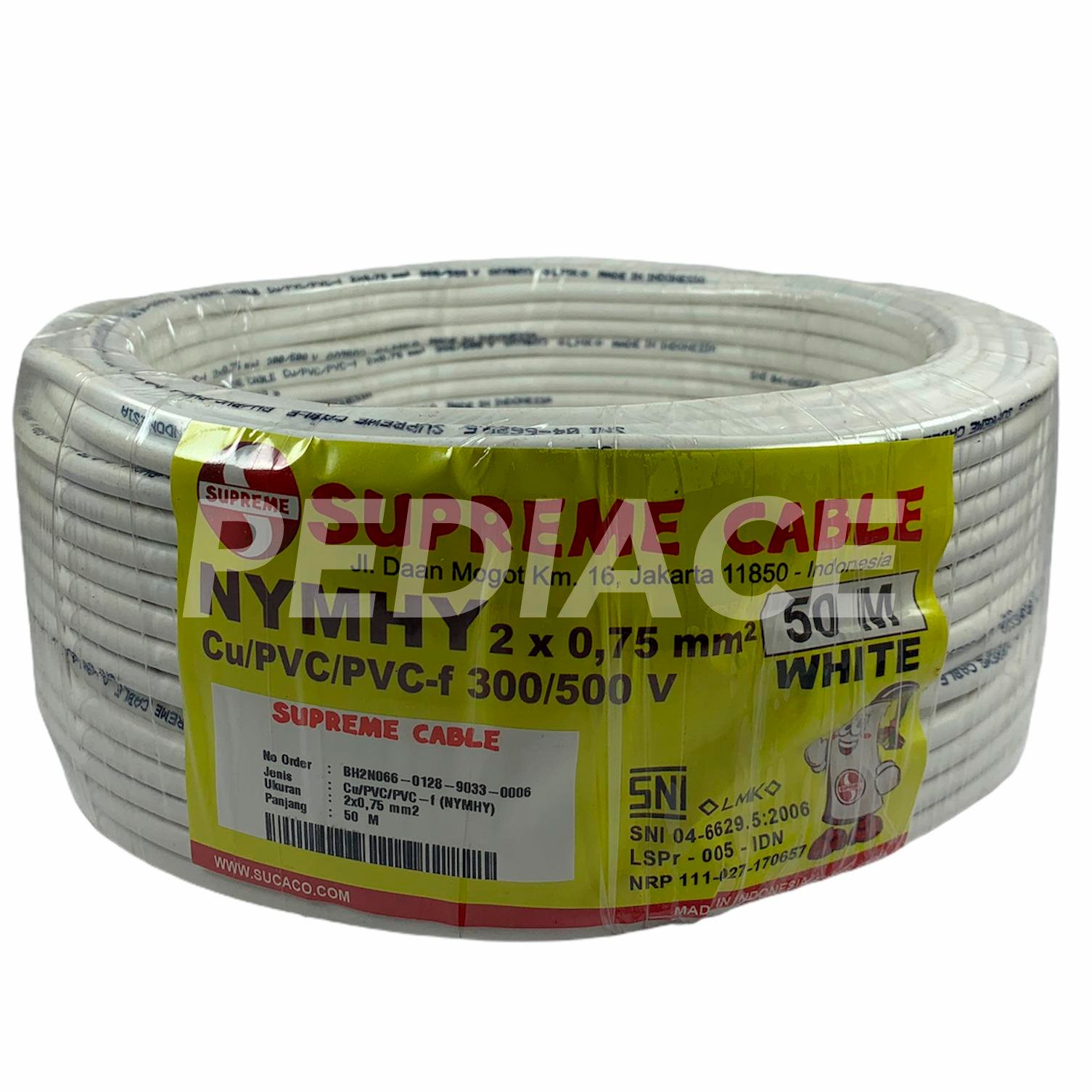 Kabel Listrik 2×0.75mm Serabut-Rambut (NYYHY) SUPREME 1 Rol (50M) – Merk: SUPREME – Jenis Kabel: Cu/PVC/PVC-f (NYYHY) – Warna: Hitam dan Putih – Ukuran: 2 x 0.75 MM – Voltase: 450/750V – Panjang: 50 Meter / 1 Rol SNI 04-6629.5-2006 -LMK-