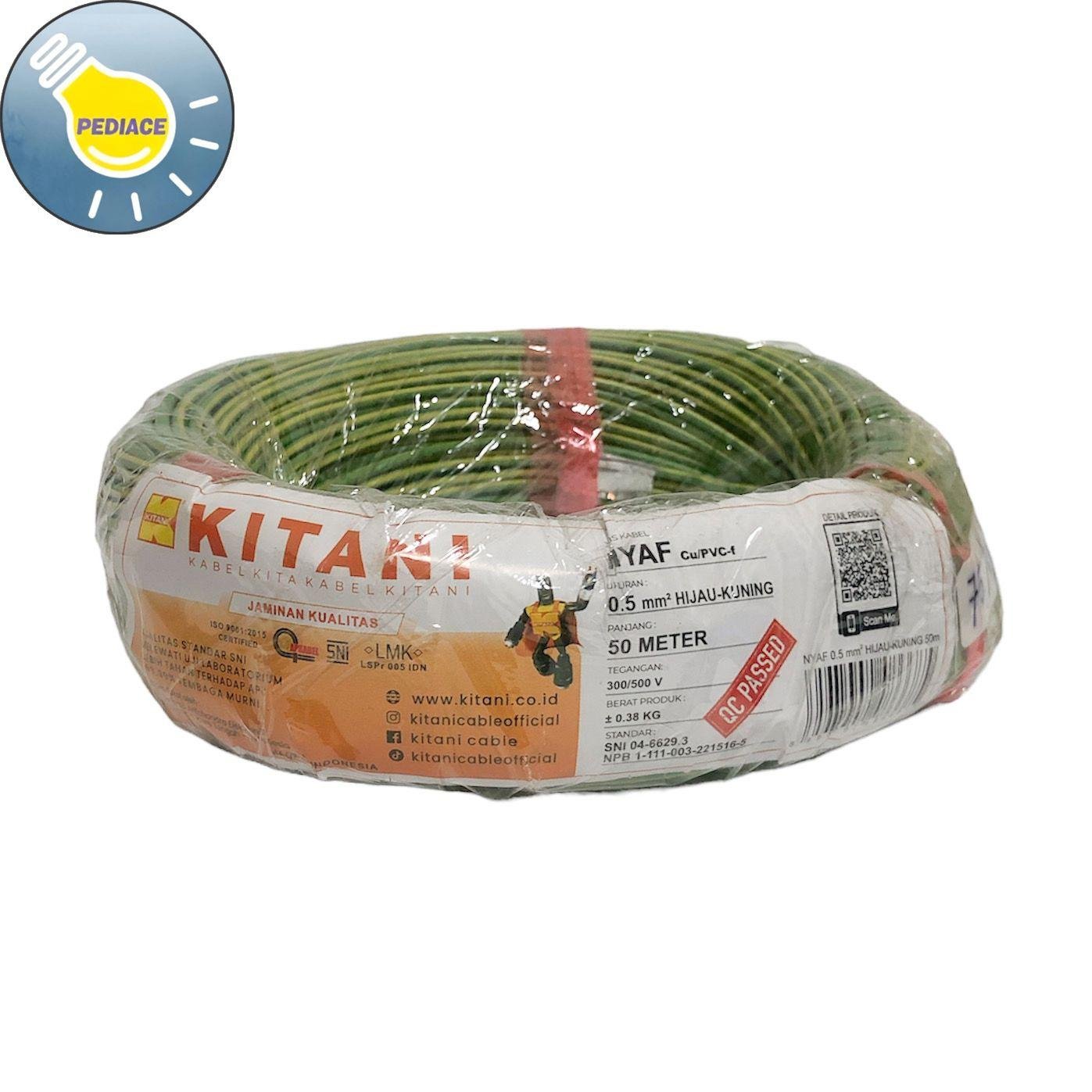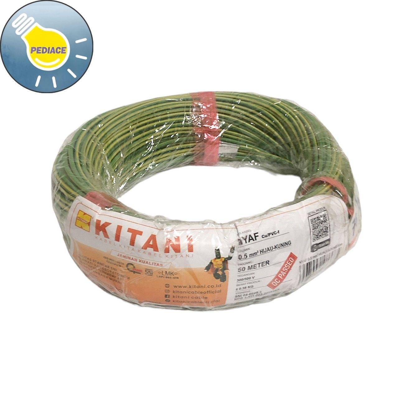 Kabel Serabut NYAF 0.5mm 50M KITANI 1 Roll 50 Meter – Hijau Kuning Merk: Kitani NYAF cu/PVC-f 0.5mm2 Tegangan 300/500V Warna Hijau Kuning Harga untuk 1 Roll 50 meter
