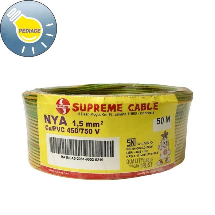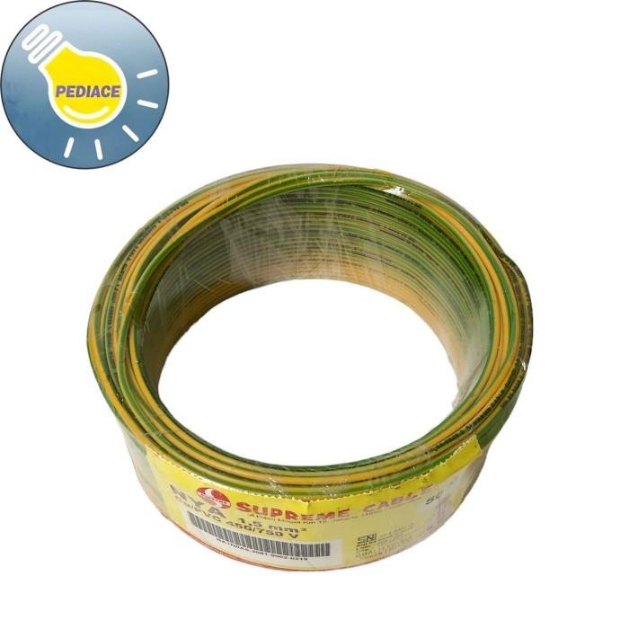 Kabel Tunggal Kawat NYA 1.5mm SUPREME Warna Kuning Hijau – Meteran SUPREME CABLE NYA 1.5mm? Cu/PVC 450/750 V Warna Kuning Hijau Harga per meter