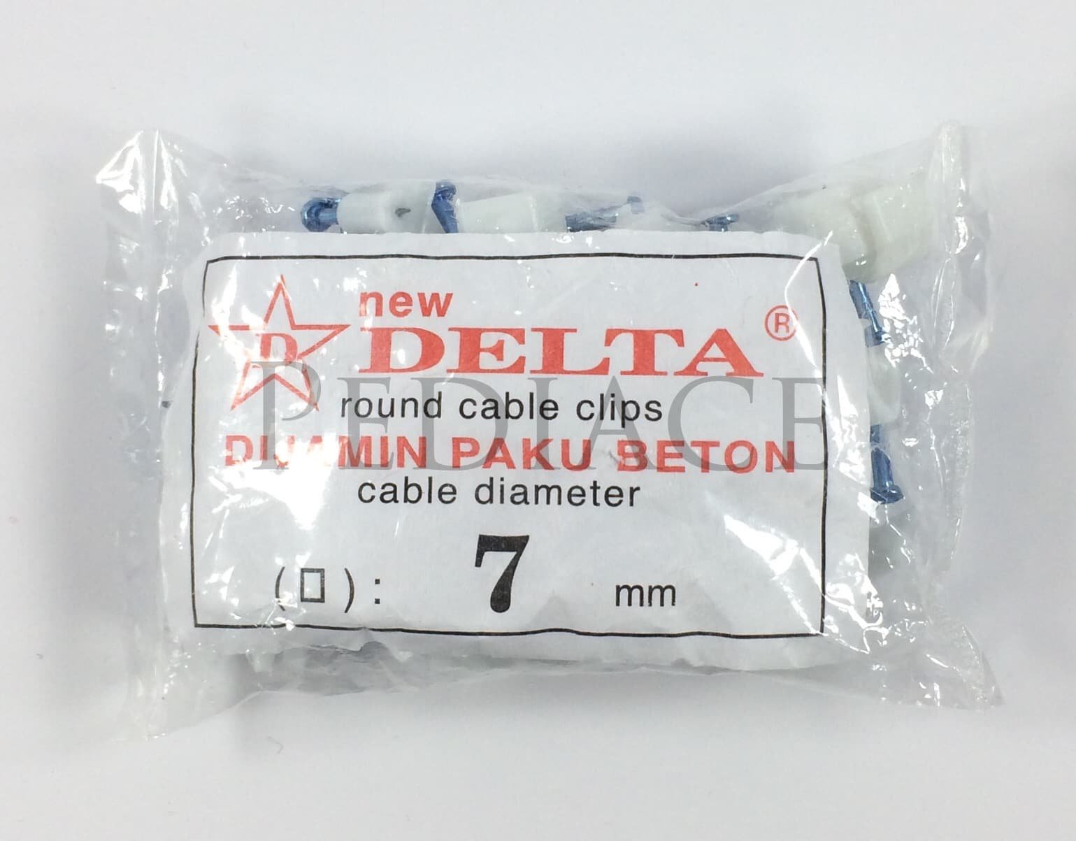 Ready DELTA Klem Kabel Paku Beton No 7 Diameter Paku 7mm, Di Jamin Paku Beton isi kurang lbh 40Pcs 1 Plastik Gunakan DELTA Klem Kabel Paku Beton No 7 ini pada saat pemasangan kabel LAN/ Listrik/ Telpon/ Dll untuk merapikan ruangan Anda. Kabel akan terlihat rapi tidak berantakan.