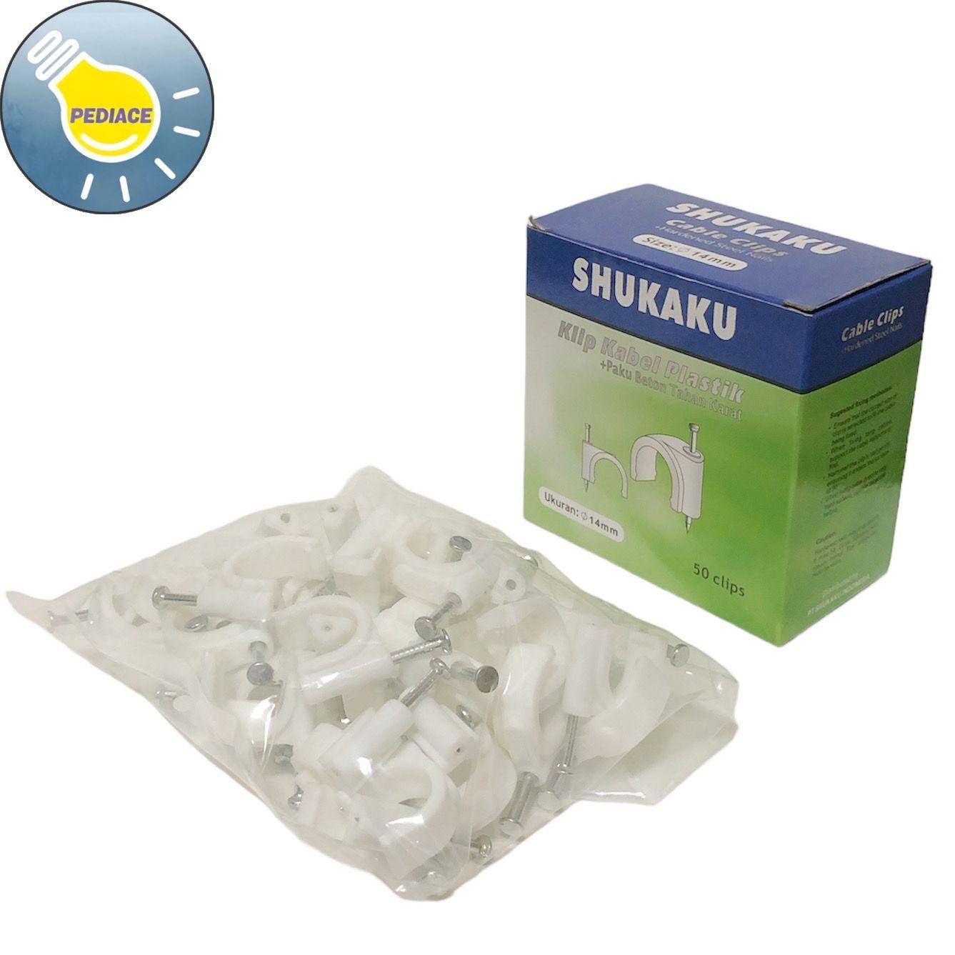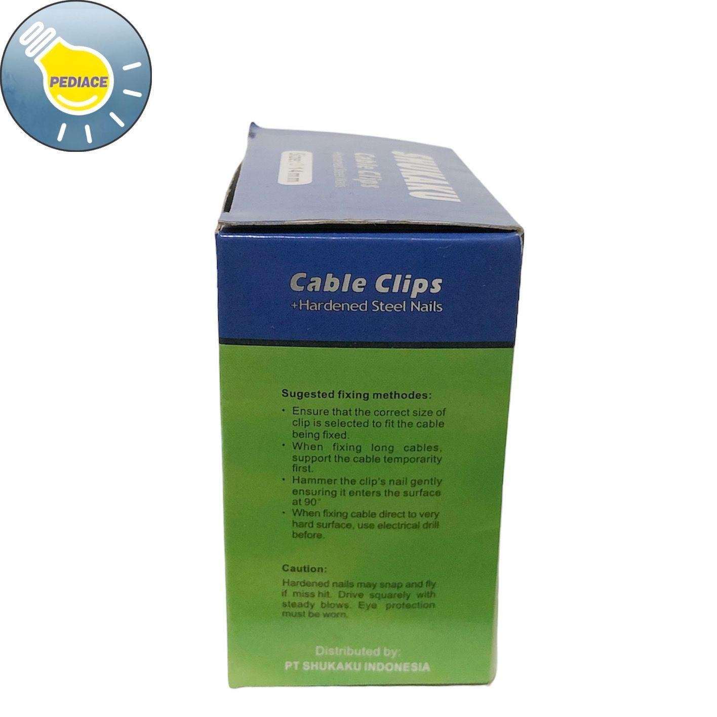 Klem Kabel Paku Beton Ukuran 14mm SHUKAKU Tahan Karat (50 Pieces) Klem Paku Beton Tahan Karat Merk: SHUKAKU Size: 14mm Isi: 50 Clips/ box