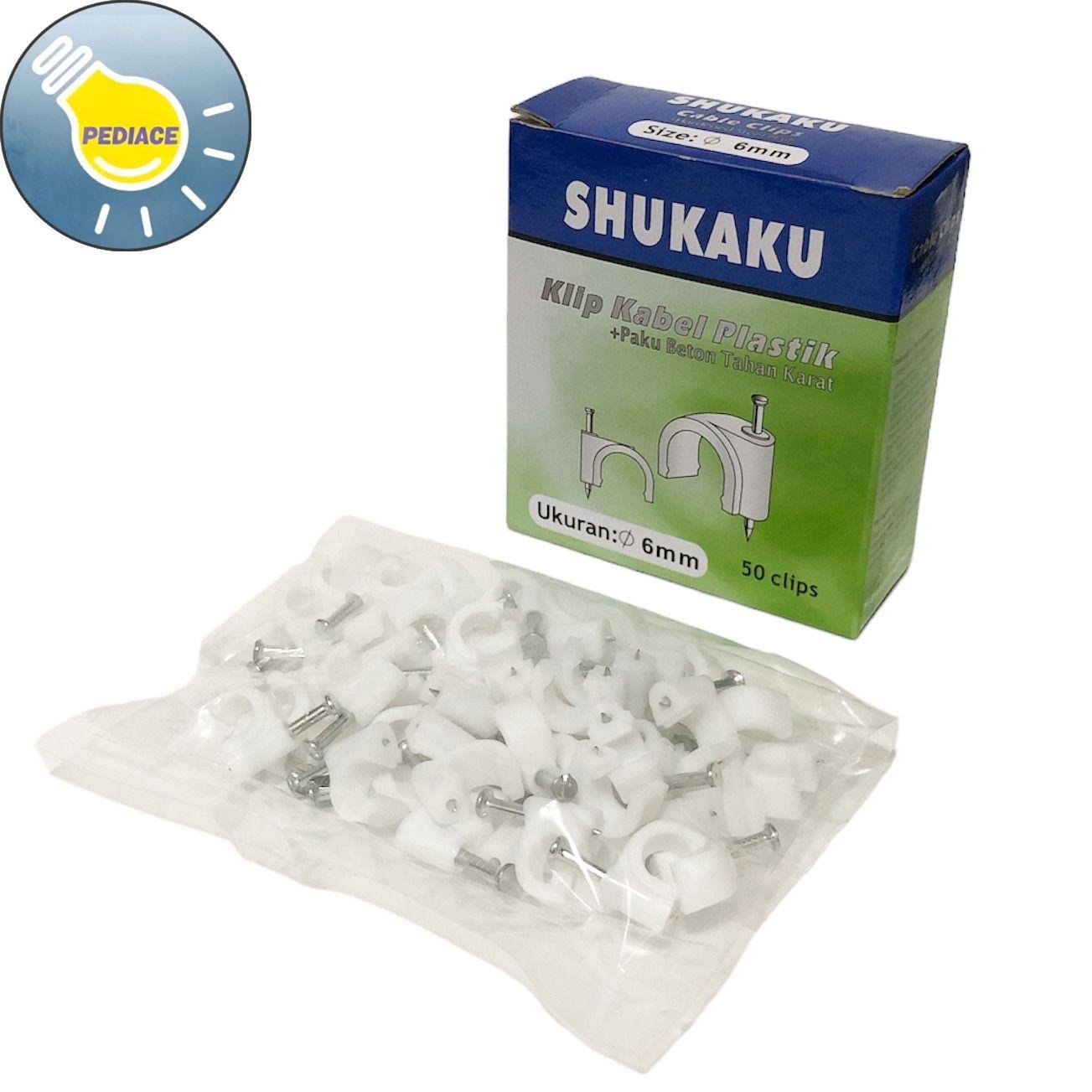 Klem Kabel Paku Beton Ukuran 6mm SHUKAKU Tahan Karat (50 Pieces) Klem Paku Beton Tahan Karat Merk: SHUKAKU Size: 6mm Isi: 50 Clips/ box