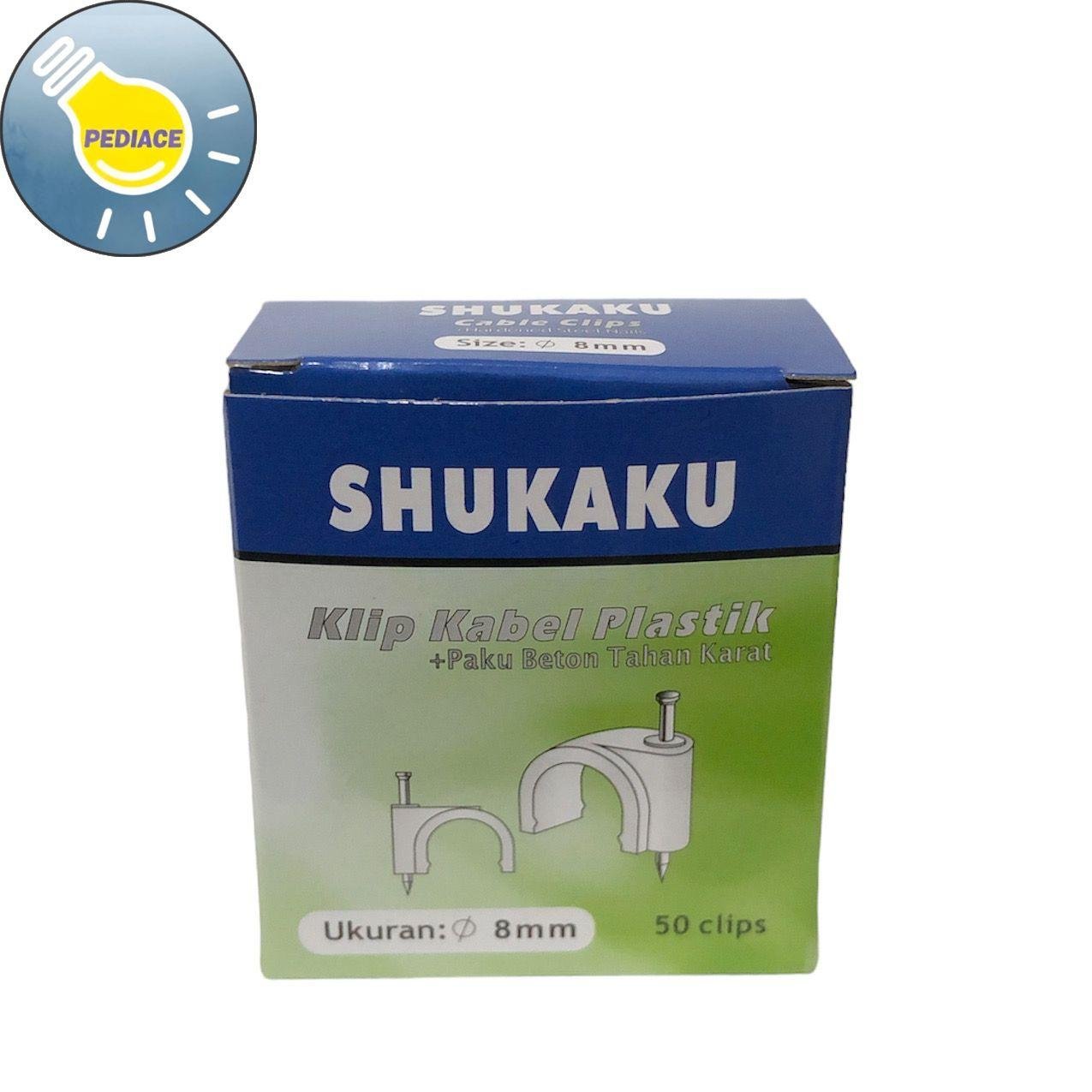 Klem Kabel Paku Beton Ukuran 8mm SHUKAKU Tahan Karat (50 Pieces) Klem Paku Beton Tahan Karat Merk: SHUKAKU Size: 8mm Isi: 50 Clips/ box