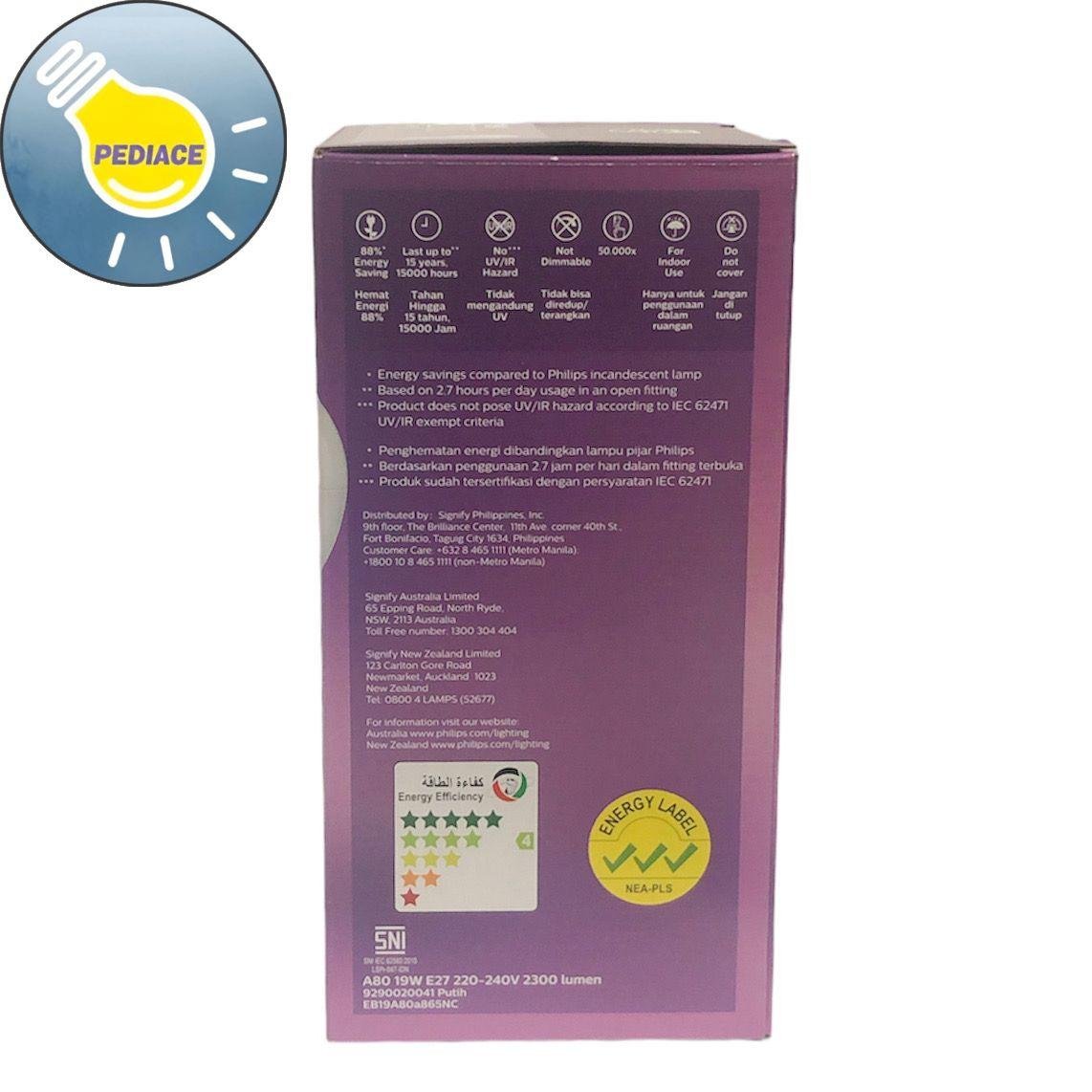 Lampu Bohlam LED 19 Watt E27 PHILIPS MyCare CoolDaylight / Putih 6500K Merk: Philips Tipe: MyCare Daya: 19 Watt Warna Cahaya: Cool Daylight / Putih 6500K Lumens: 2300lm Dimensi -+ 8x8x15.5cm *Hemat energi 88% *Tahan hingga 15000 jam *Tidak mengandung UV *Tidak bisa diredupkan/diterangkan *Hanya untuk penggunaan dalam ruangan *Jangan ditutup SNI Interlaced Optics. Designed for the comfort of your eyes.