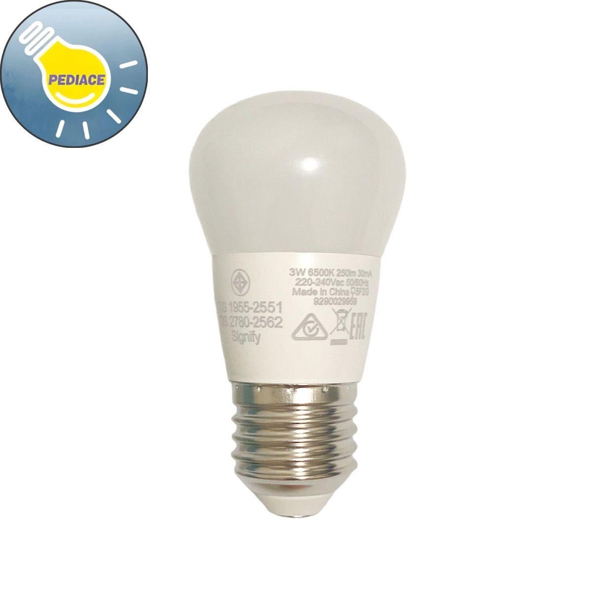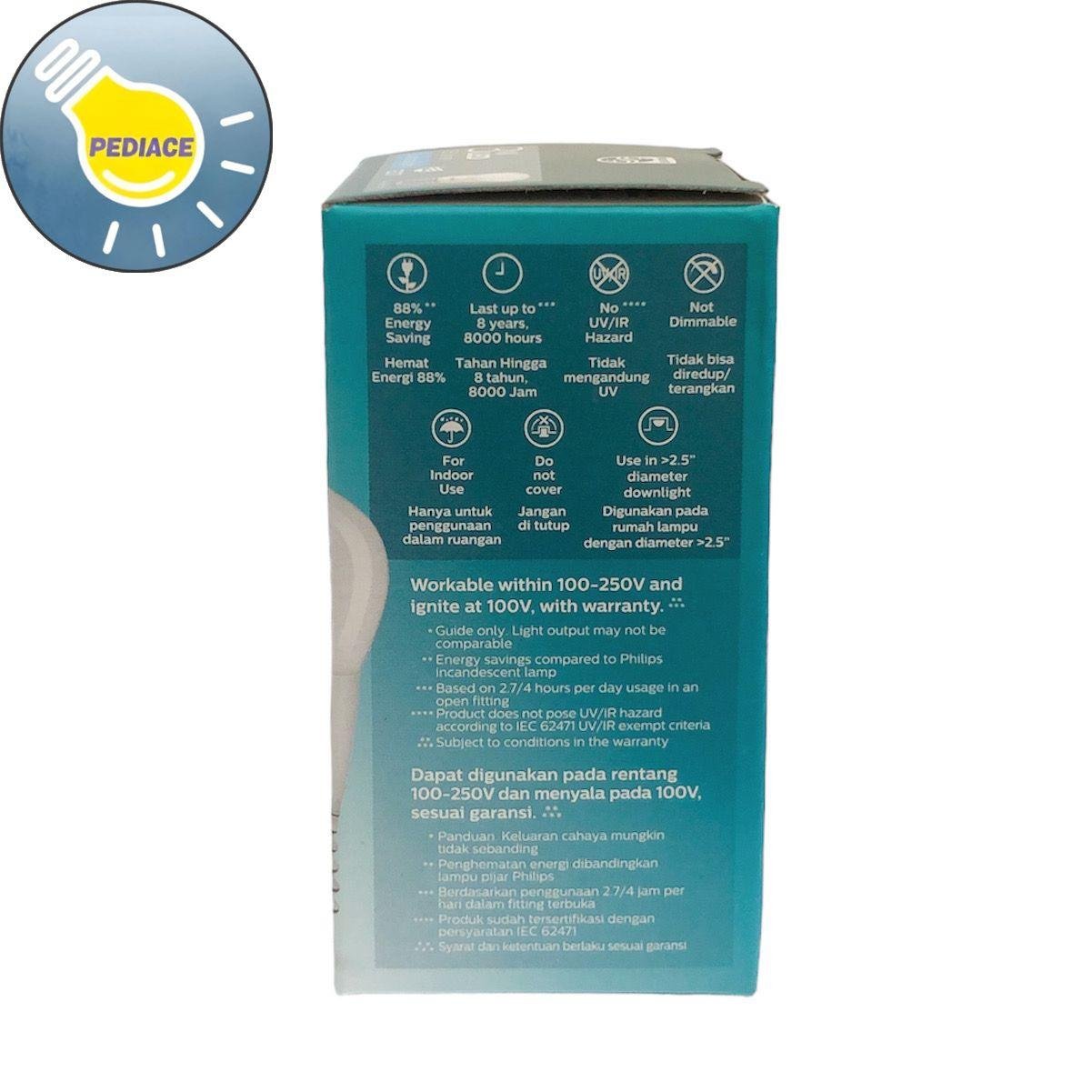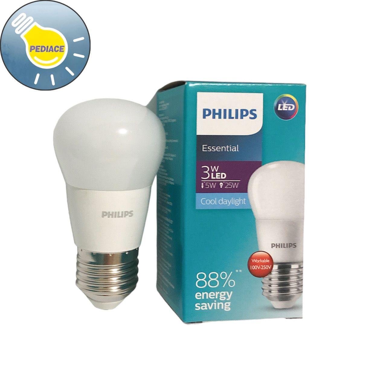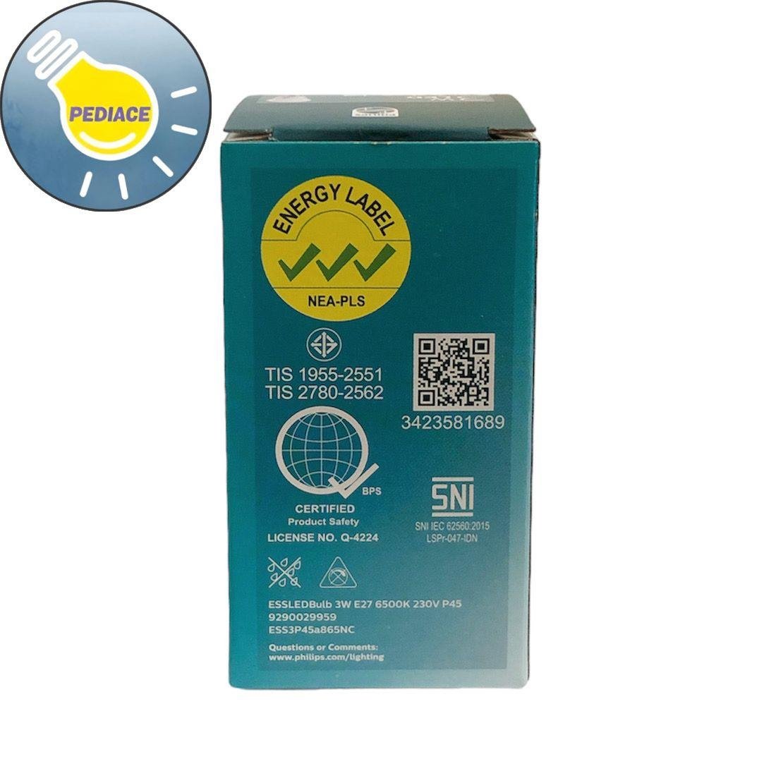 Lampu Bohlam LED 3 Watt E27 PHILIPS Essential Cool Daylight / Putih Merk: Philips Tipe: Essential Daya: 3 Watt Warna cahaya: Cool Daylight / Putih Lumens: 250lm Dimensi: 45x87mm *Hemat energi 88% *Tahan hingga 8000 jam *Tidak mengandung UV *Tidak bisa diredupkan/diterangkan SNI * Lampu akan dites dan packing bubble wrap dan dus sebelum dikirim
