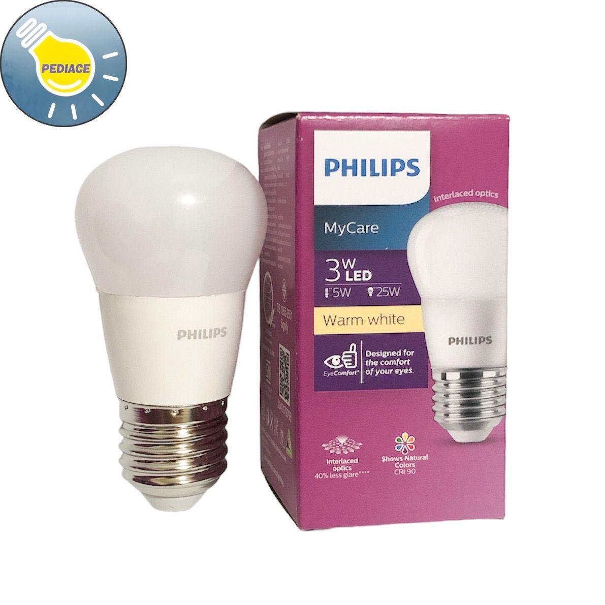 Lampu Bohlam LED 3 Watt E27 PHILIPS MyCare Warm White / Kuning 3000K Merk: Philips Tipe: MyCare Daya: 3 Watt Warna Cahaya: Warm White / Kuning 3000K Lumens: 250lm Dimensi: 45x87mm *Hemat energi 88% *Tahan hingga 15000 jam *Tidak mengandung UV *Tidak bisa diredupkan/diterangkan *Hanya untuk penggunaan dalam ruangan *Jangan ditutup *Digunakan pada rumah lampu dengan diameter gt;2.5 #34; SNI Interlaced Optics. Designed for the comfort of your eyes. CRI 90