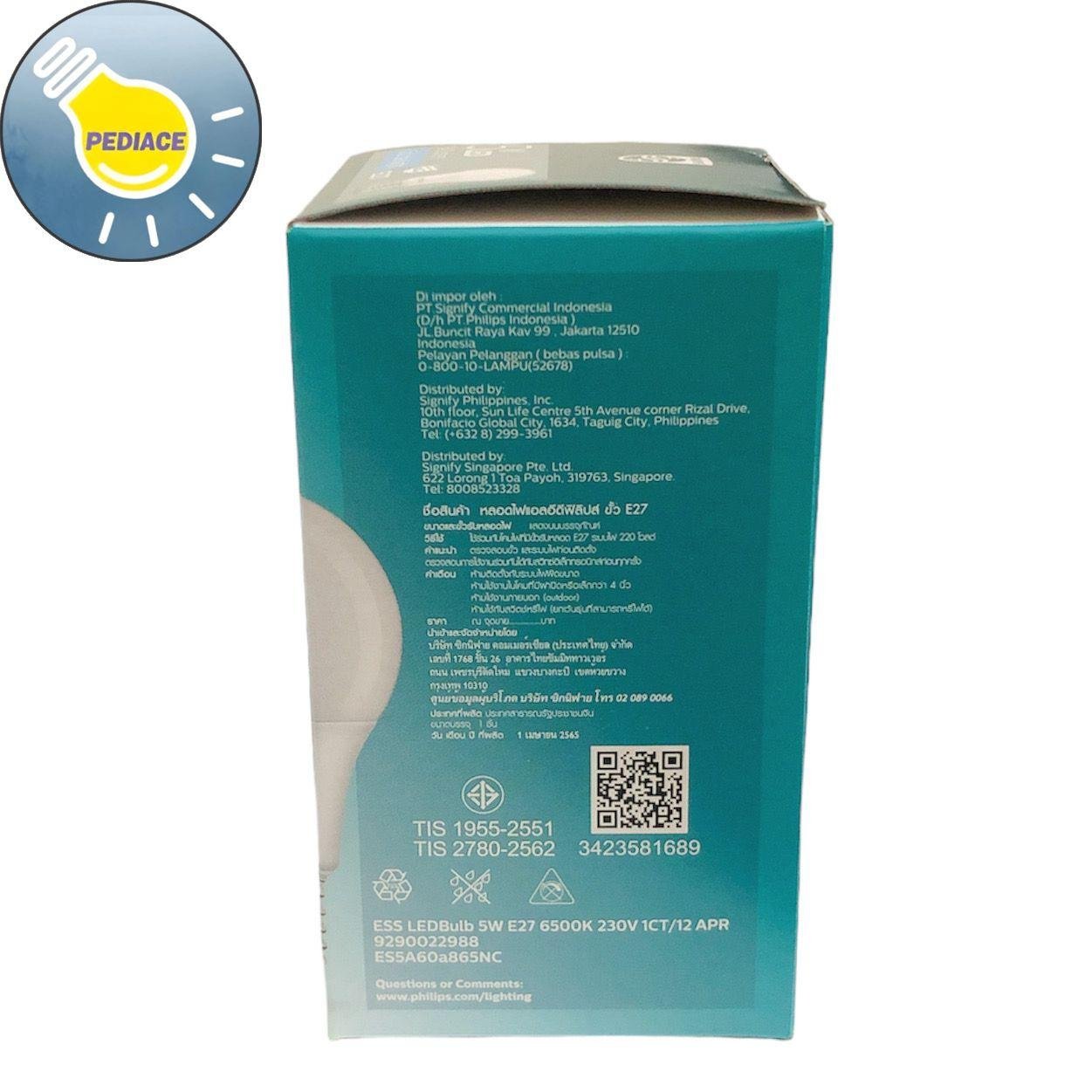Lampu Bohlam LED 5 Watt E27 PHILIPS Essential Cool Daylight / Putih Merk: Philips Tipe: Essential Daya: 5 Watt Warna cahaya: Cool Daylight / Putih Lumens: 540lm Dimensi: -+5.5×5.5×10.5cm *Hemat energi 90% *Tahan hingga 12000 jam *Tidak mengandung UV *Tidak bisa diredupkan/diterangkan *Hanya untuk penggunaan dalam ruangan *Jangan ditutup *Digunakan pada rumah lampu dengan diameter gt;3.5 #34; SNI * Lampu akan dites dan packing bubble wrap dan dus sebelum dikirim