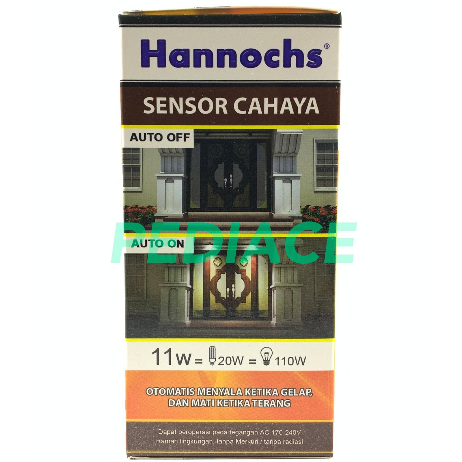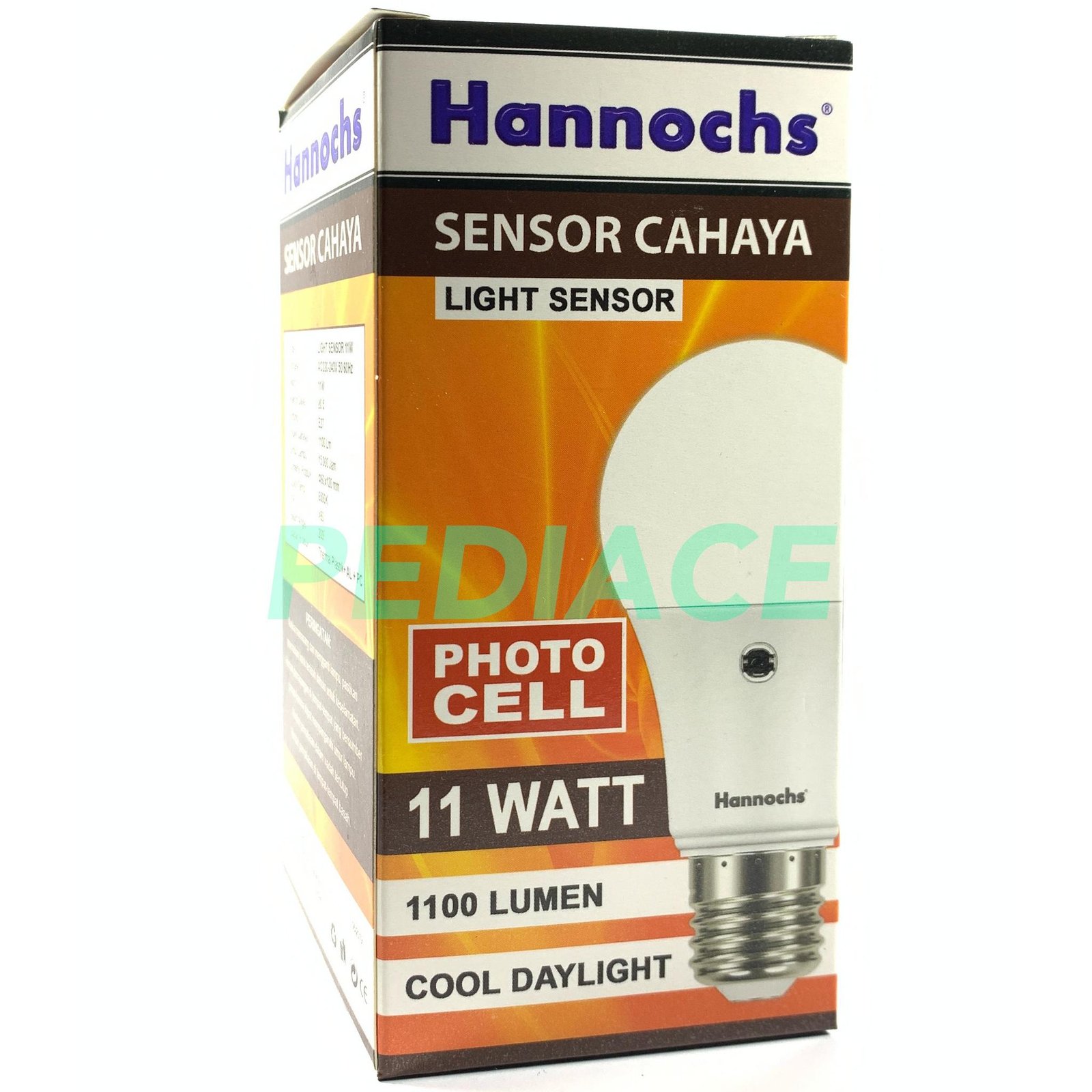 Lampu Bohlam LED E27 Sensor Cahaya 11W Putih 6500K Hannochs Photo Cell Merk: Hannochs Voltase: AC220V-240V 50/60Hz Watt: 11W Faktor Daya: gt;0.5 Fitting: E27 Fluks Cahaya: 1100Lm Umur Lampu: 15.000 jam Dimensi Produk: 60x120mm Color Temp: 6500K / Putih / Cool Daylight CRI: gt;80 Beam Angle: 200 Bahan Produk: Thermal Plastik+AL+PC