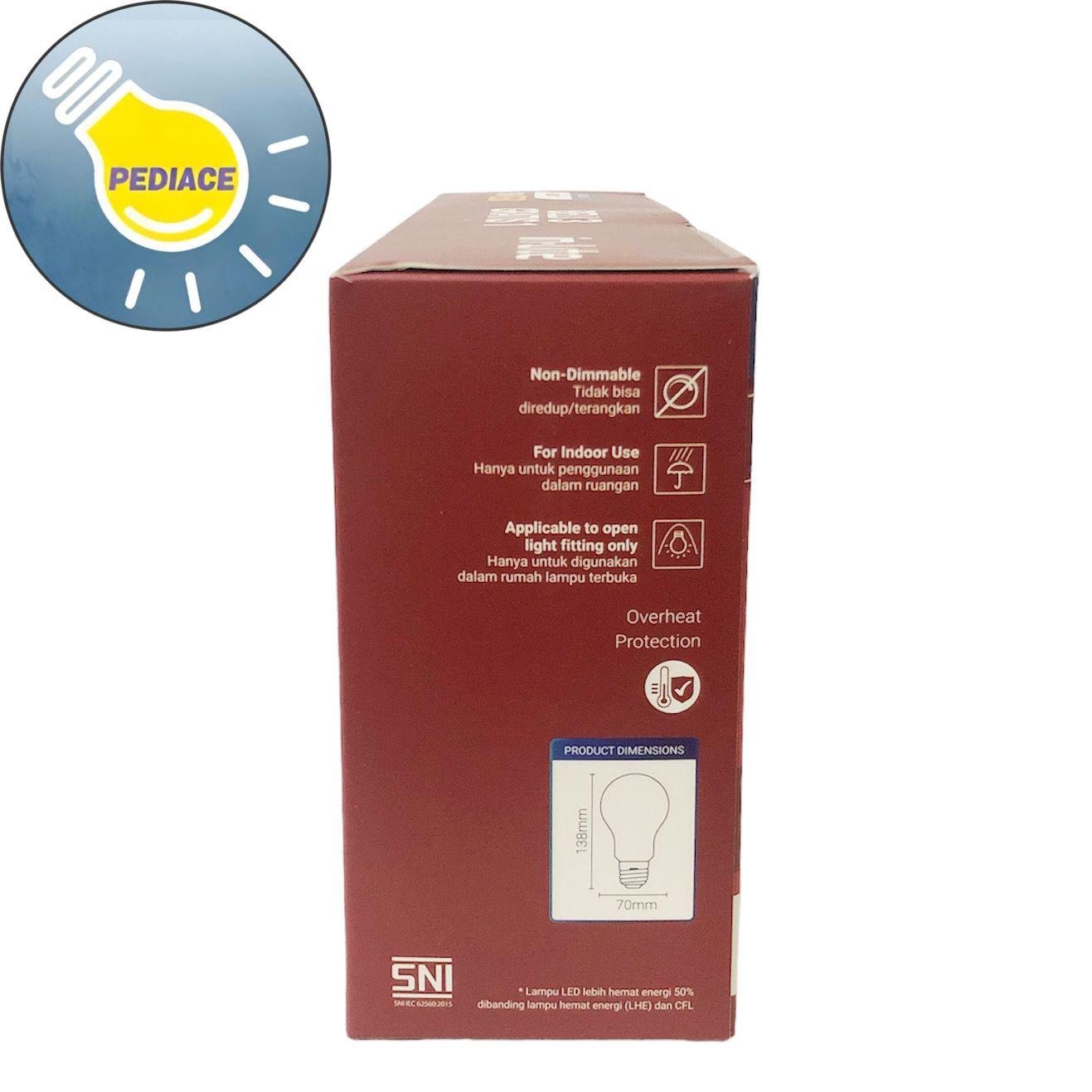 Lampu Bohlam LED INLITE INB007 15 Watt 1650lm Kuning 3000K 3 Gratis 1 * READY STOCK WARNA Kuning (Warm White) 1 Pack dapat 4pcs Model INB007 Daya listrik terukur 15 W Daya yang setara 150 W (GLS) Suhu warna 3000K Kap/fitting E27 Voltase 100 – 240 V 50/60Hz Lumens 1650Lm CRI gt;80 Non-dimmable Hemat energy * Lampu akan di test dan di packing bubble sebelum dikirim