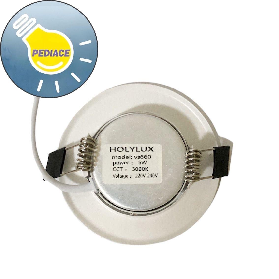 Lampu Downlight 5W LED COB 5 Watt Ceiling Spotlight 3000K LED COB Ceiling Light Merk: Holylux Model: vs660 Power: 5W CCT: 3000K Voltage: 220V-240V Lubang plafon: 70mm Diameter: 8.5cm Adjustable Note: Lampu akan di tes dan dipacking bubble serta dus sebelum dikirim