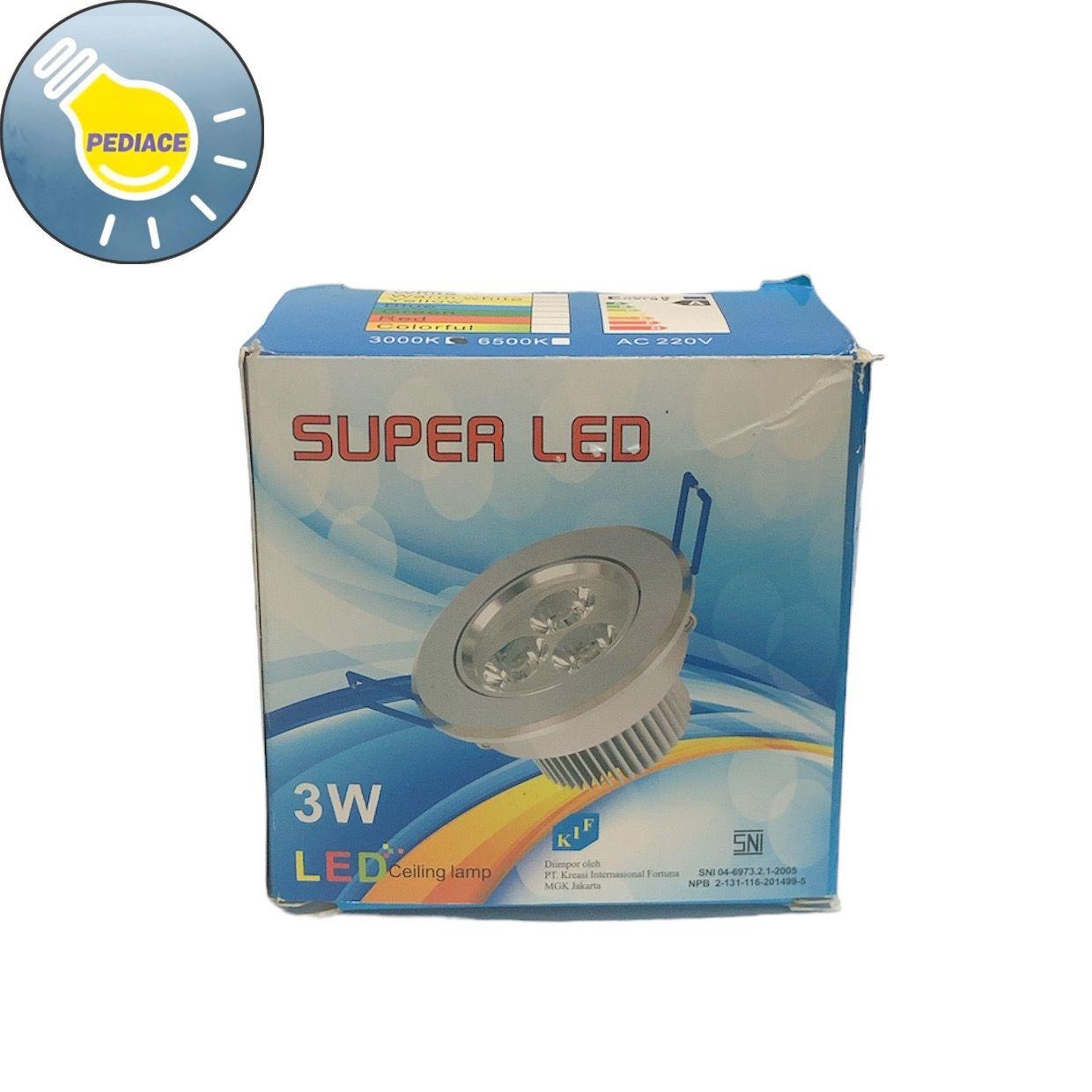 Lampu Downlight LED 3W 3 Mata SUPERLED Inbow Body Silver- 3000K Kuning LED Ceiling Lamp Merk: SUPER LED Daya: 3 watt 3 Mata LED Cahaya: Kuning 3000K Body: Silver AC 220V Untuk penggunaan indoor Dimensi -+ 8.3×8.3×2.5cm Lubang plafon -+ 6.5cm Note: Lampu akan di tes dan dipacking bubble serta dus sebelum dikirim