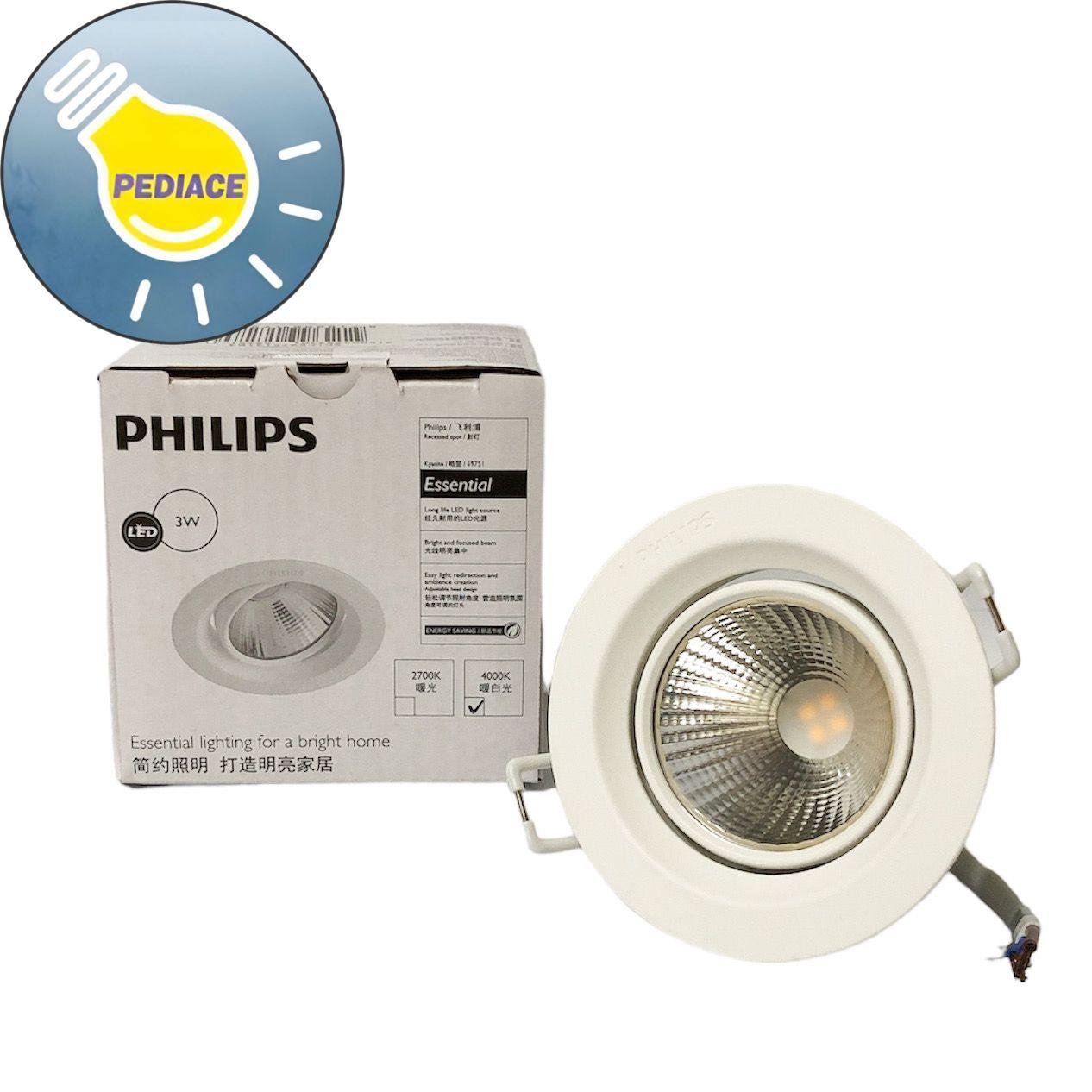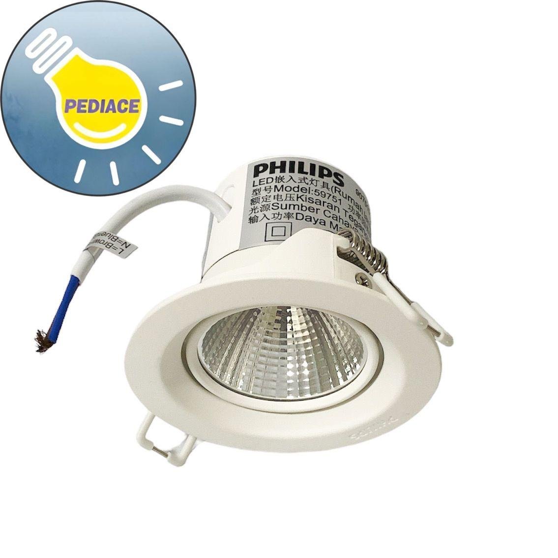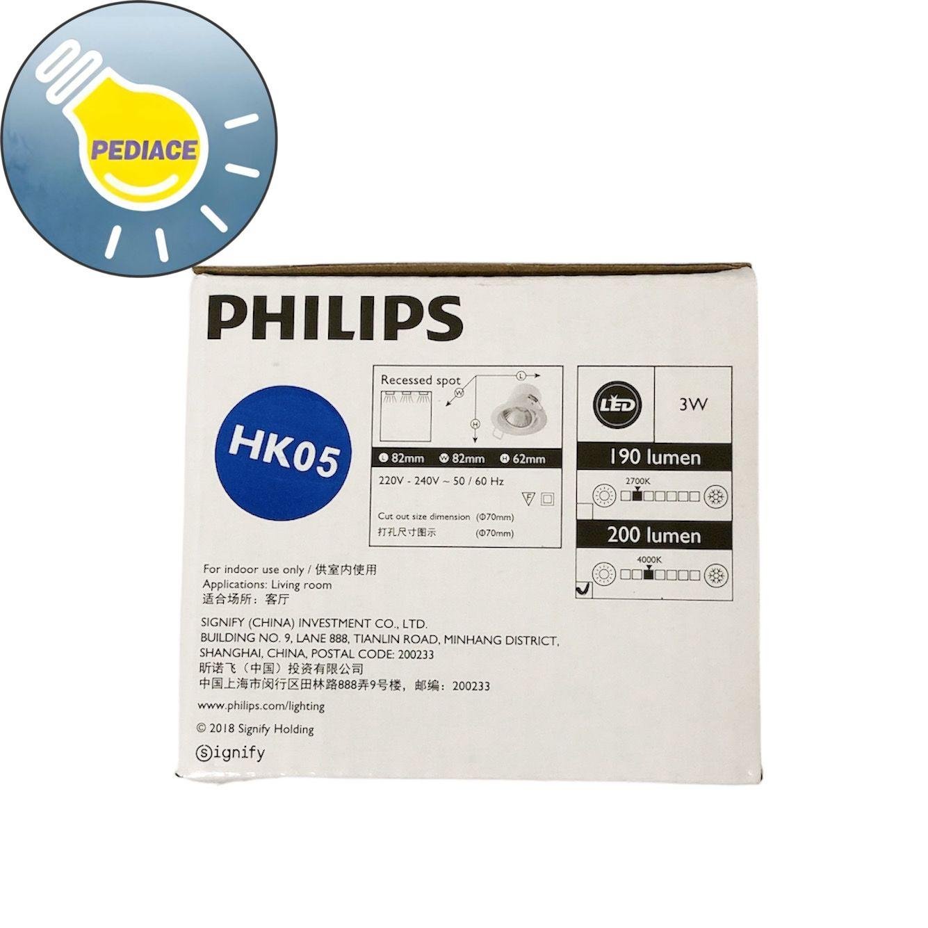 Lampu Downlight LED Spotlight 3W PHILIPS Recessed Spot Kyanite 4000K Pencahayaan yang fokus untuk menyorot objek/arah yang diinginkan Cocok untuk penggunaan di dalam ruangan Power: 3 Watt Voltage: 220 – 240 V 50/60Hz Colour: Natural White 4000K Lifetime 15.000 hr (Long Life LED Light source) Bright and Focused beam Lubang Dalam Cut Out 70mm Dimensi 82x 82x 62mm Adjustable Head Design – Lampu dapat di atur ke kanan / kiri (180 derajat) 200 lumen * Lampu akan dites dan packing bubble wrap dan dus sebelum dikirim