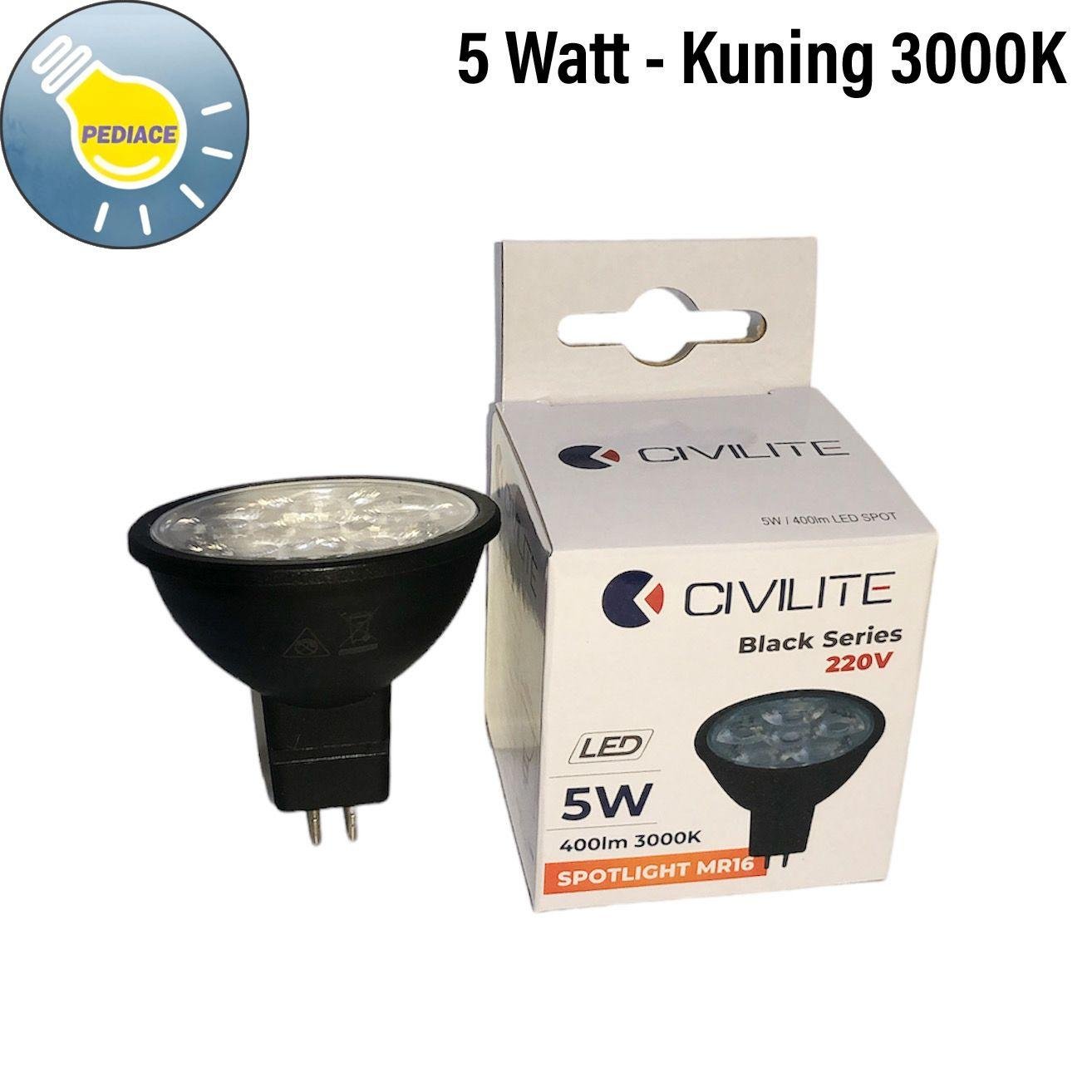 Lampu LED 5W Spotlight MR16 CIVILITE Black Series Cahaya Kuning 3000K