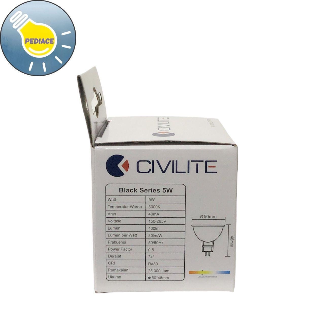 Be the first to review “Lampu LED 5W Spotlight MR16 CIVILITE Black Series Cahaya Kuning 3000K”
