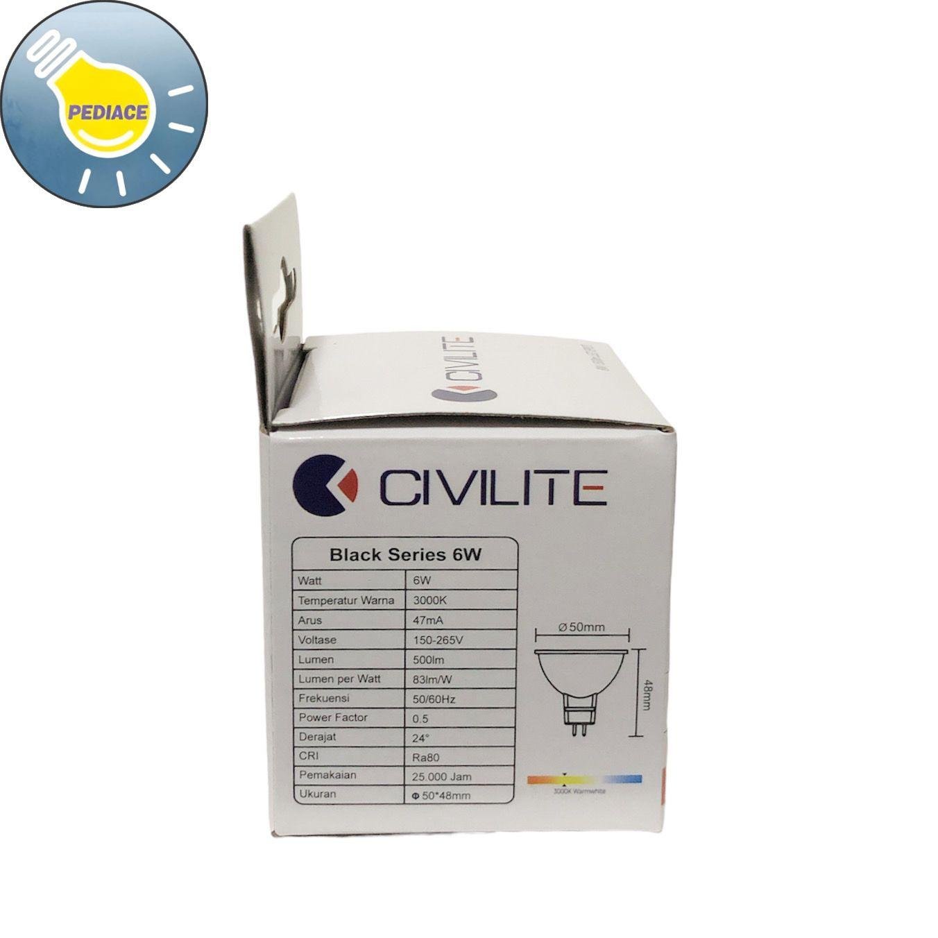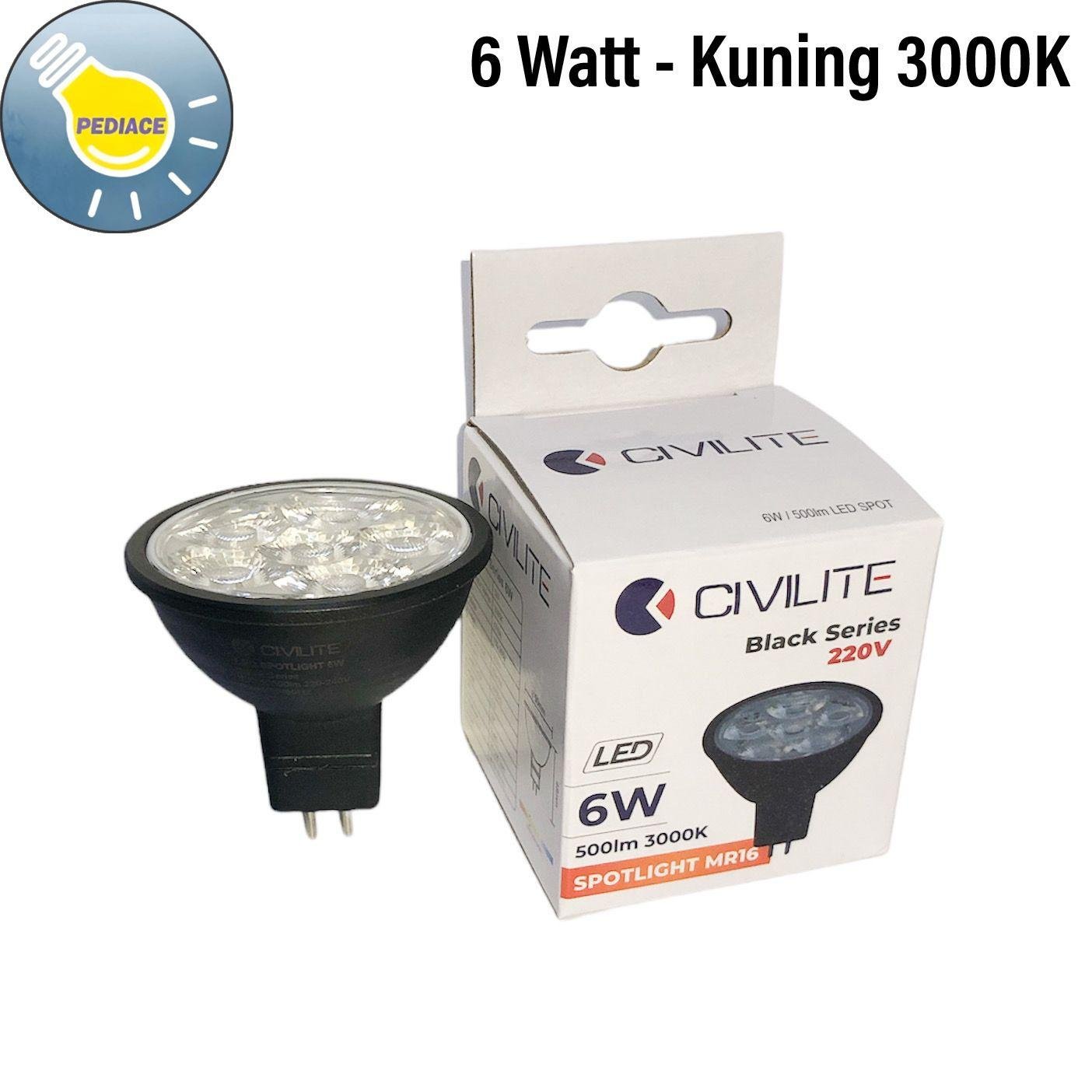 Lampu LED 6W Spotlight MR16 CIVILITE Black Series Cahaya Kuning 3000K Merk: CIVILITE Tipe: Black Series Daya: 6 Watt Fitting: MR16 Temperatur warna: 3000K / Kuning Arus: 47mA Voltase: 150-265V Lumen: 500lm Lumen per Watt: 83lm/W Frekuensi: 50/60Hz Power Factor: 0.5 Derajat: 24 CRI: Ra80 Pemakaian: 25.000 Jam Ukuran: 50x50x48mm Non-dimmable * Lampu akan di test dan di packing bubble sebelum dikirim