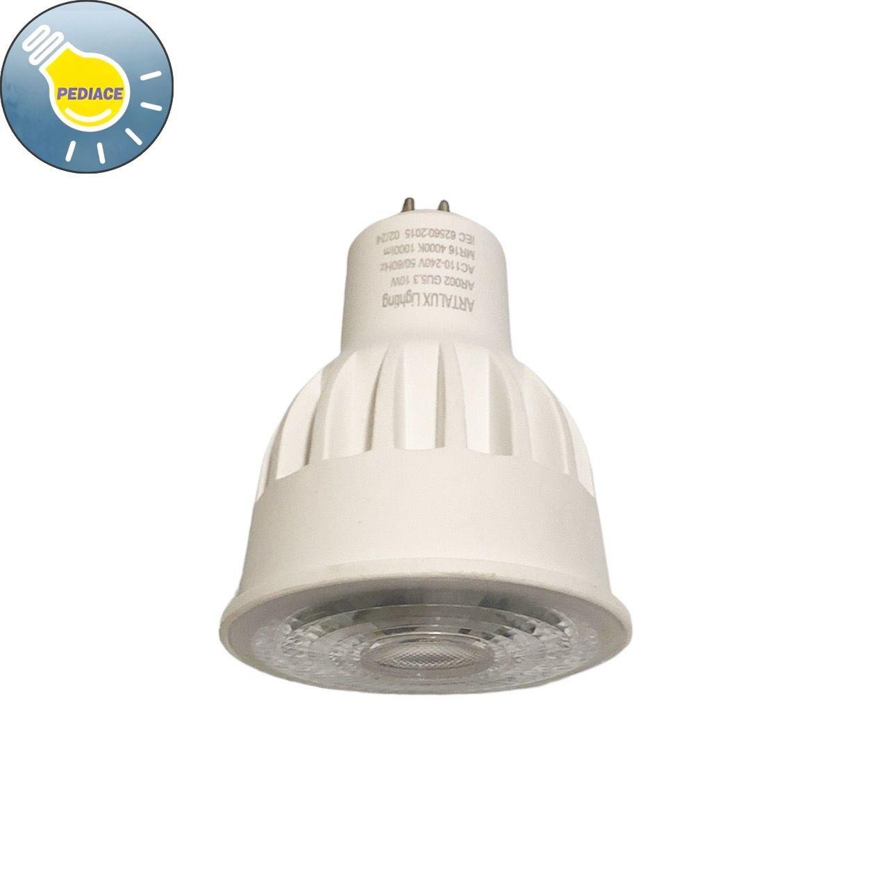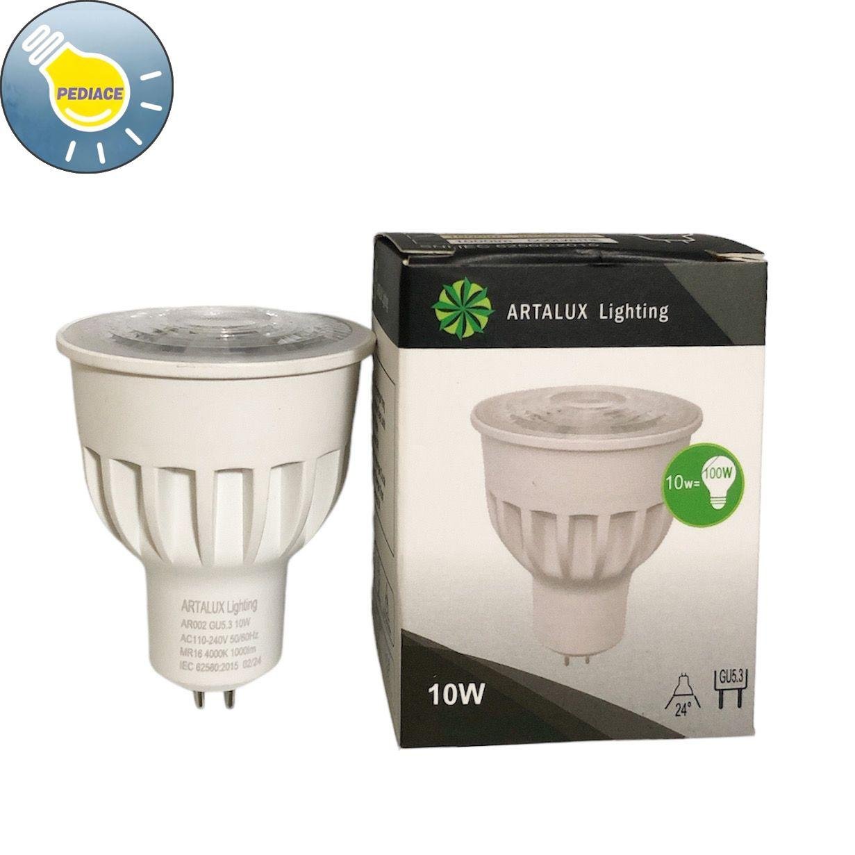 Lampu LED MR16 Bulb COB 10W ARTALUX AR002 GU5.3 Natural White 4000K 1000lm Merk: ARTALUX Kode: AR002 GU5.3 MR16 10W Fitting: MR16 Daya: 10 watt Cahaya: Natural White 4000k Lumens: 1000lm AC110-240V 50/60Hz CRI: gt;80 bridgelux chips Beam angle: 24 derajat PF: 0.5 IP Grade: IP20 Dimensi: 50x50x66mm SNI *Lampu akan dites terlebih dahulu sebelum dikirim