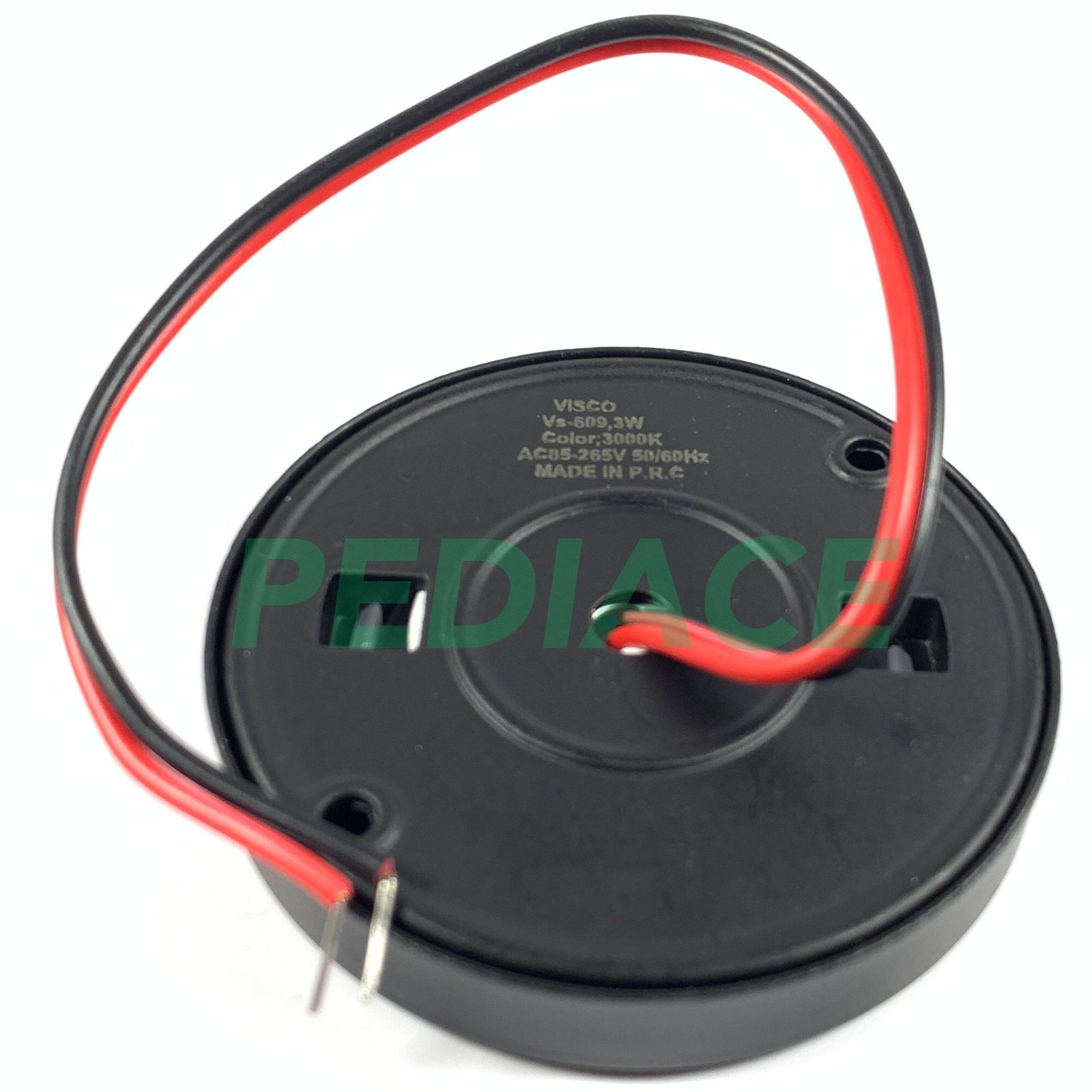 Merk: VISCO Daya: 3 Watt Lampu tempel mini AC858-265 50/60Hz Body hitam Sinar cahaya warna kuning (3000K) Diameter 6,1cm Tinggi 1,1cm *Lampu akan di test nyala dan di packing bubble sebelum dikirim