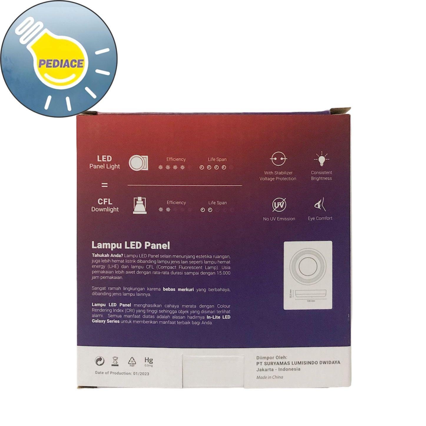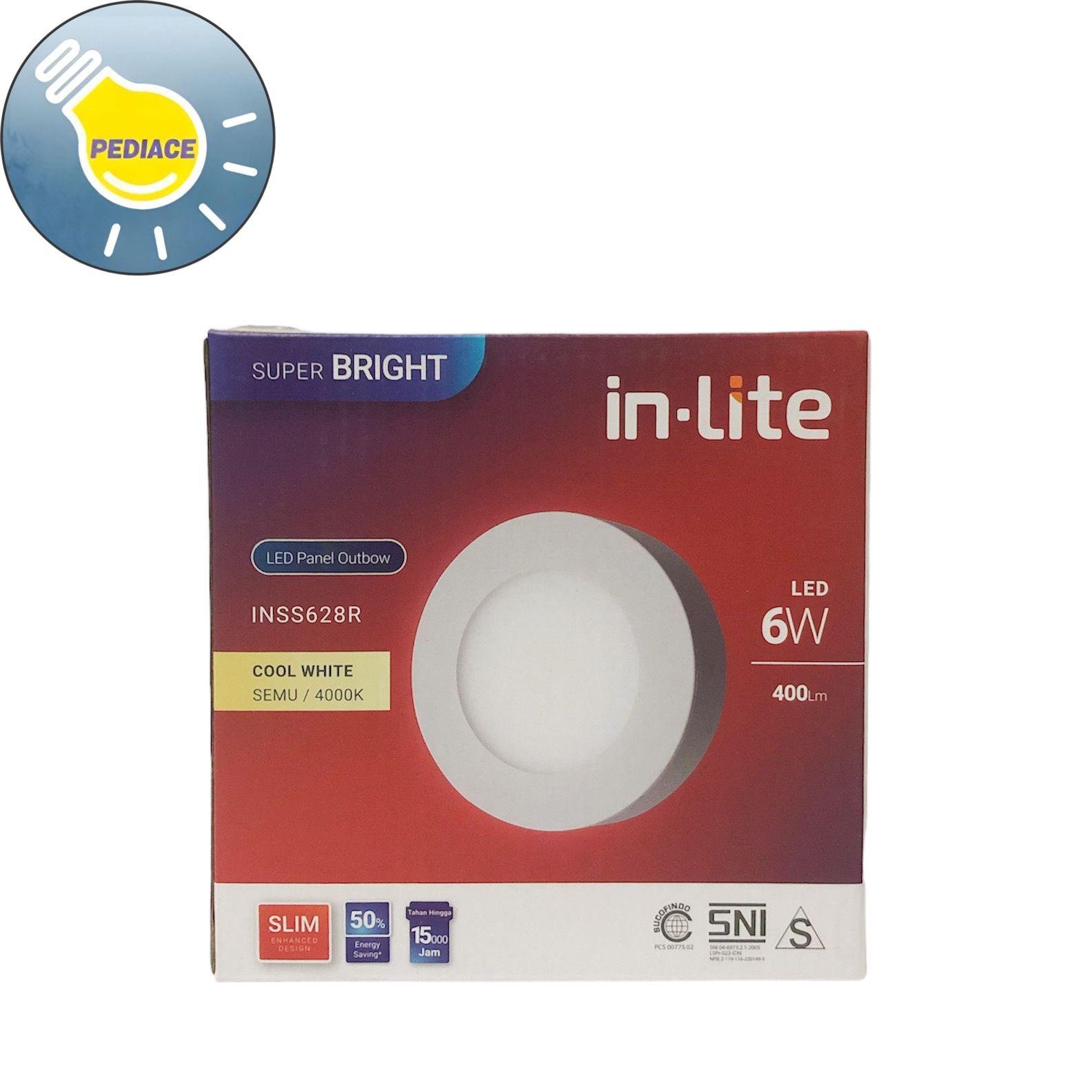 Lampu LED Panel Light Bulat 6 Watt Inlite Outbow SNI COOL WHITE 4000K – Merk: inlite – Daya: 6 Watt – Voltase: 220 – 240V 50-60hz – Tersedia warna cahaya: COOL WHITE 4000K (Semu) – Diameter: 130mm – Tinggi: 32.5mm – Bentuk: Bulat (Round) – Bisa langsung sambung ke listrik 220V/ Listrik PLN – High CRI: gt;80 – With stabilizer voltage protection – No UV Emission – Eye comfort – 15.000 Hour long life service Note: Lampu akan di tes dan dipacking bubble serta dus sebelum dikirim