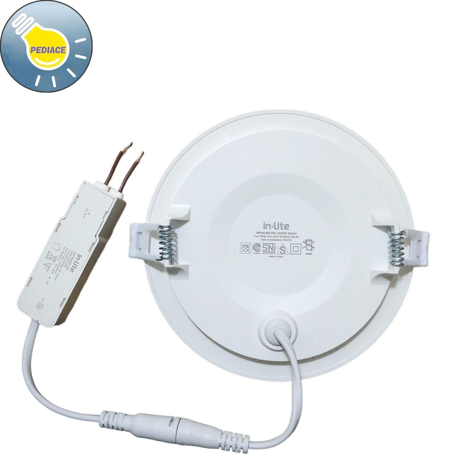 Lampu LED Panel Light Bulat 9 Watt Inlite Inbow SNI – COOL WHITE 4000K – Merk: inlite – Daya: 9 Watt – Lumens: 650lm – Voltase: 220 – 240V 50-60hz – Tersedia warna cahaya: COOL WHITE 4000K – Diameter: 146 mm – Tinggi: 25.5 mm – Lubang Plafon: 130 mm – Bentuk: Bulat (Round) – Bisa langsung sambung ke listrik 220V/ Listrik PLN – High CRI: gt;80 – With stabilizer voltage protection – No UV Emission – Eye comfort – 15.000 Hour long life service Note: Lampu akan di tes dan dipacking bubble serta dus sebelum dikirim