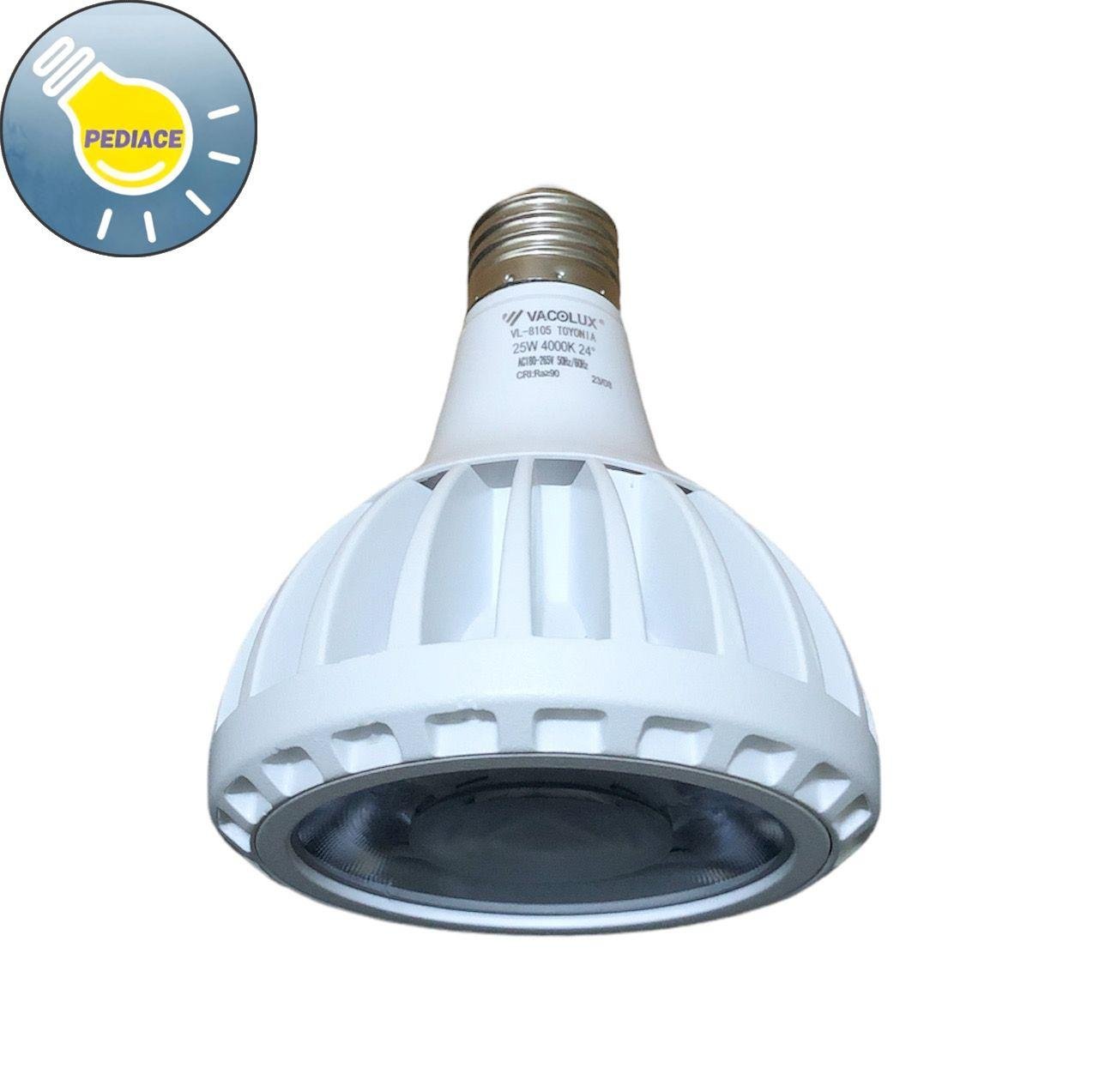 Lampu LED Spotlight PAR30 25W E27 VACOLUX VL-8105 Cahaya Natural 4000K SNI Merk: Vacolux Voltage: 220-240VAC, 50/60Hz Color temp: 4000K / Natural Lumens: 2200Lm CRI: gt;90 Ukuran: 95x95x120mm Warna Body: Putih Material: Flame retardant PC Lamp viewing angle: 24 derajat Note: Lampu akan di tes dan dipacking bubble serta dus sebelum dikirim