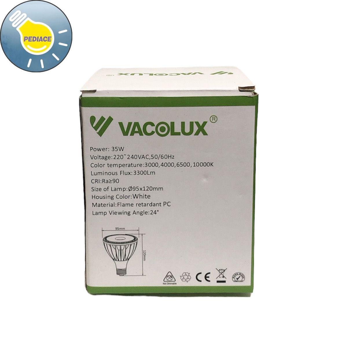 Lampu LED Spotlight PAR30 35W E27 VACOLUX VL-8112 Putih 10000K SNI Merk: Vacolux Tipe: VL-8112 Daya: 35 Watt Voltage: 220-240VAC, 50/60Hz Color temp: 10000K / putih Lumens: 3300Lm CRI: Ra gt;90 Ukuran: 95x95x120mm Warna Body: Putih Material: Flame retardant PC Lamp viewing angle: 24 derajat Note: Lampu akan di tes dan dipacking bubble serta dus sebelum dikirim