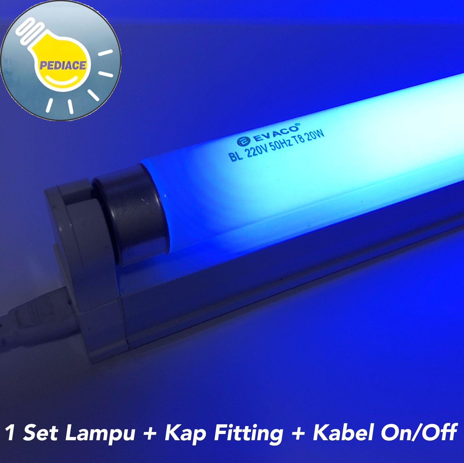 Lampu Nyamuk UVA Ultraviolet BL T8 20W 61.5cm SET KOMPLIT KABEL ON/OFF Harga yg tertera adalah harga 1set komplit yg terdapat – 1pcs lampu T8 Uv/Ultraviolet BL T8 20watt (panjang lampu -+ 60.5cm) – 1pcs Housing 20watt (panjang kap -+ 61.5cm) Panjang keseluruhan termasuk rumah/kap nya lebih kurang 61.5cm – 1pcs Colokan Kabel On/Off (panjang -+ 120cm) Tegangan 220V BL Blacklight Bulbs BL blacklights look just like standard fluorescent light bulbs. They are used for insect traps, tanning beds, UV curing, phototherapy, and other ultraviolet applications where visible light along with the UV is not a problem. Common BL Blacklight Applications Insect Control Lighting Ultraviolet Curing Equipment Tanning Beds Phototherapy Low Level Disinfection Note: Lampu dan rumah/kap/housing akan dicoba terlebih dahulu dan dibungkus bubble wrap sebelum dikirim- What is the Difference Between BL and BLB Blacklights The fluorescent blacklight category consists of bulbs with phosphors that create a peak wavelength at 365 nanometers. This part of the spectrum is called UV-A, and it is just inside the boundary with visible light. However, UV-A bulbs are considered ultraviolet bulbs as their peak wavelength is in the ultraviolet part of the spectrum. Blacklights have two different designations, which you can usually find at the end of the part number for a given bulb. These designations are BL and BLB. Both of them emit the same UV-A wavelength, but one blocks out most visible light where the other does not.