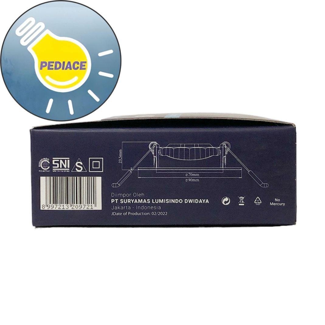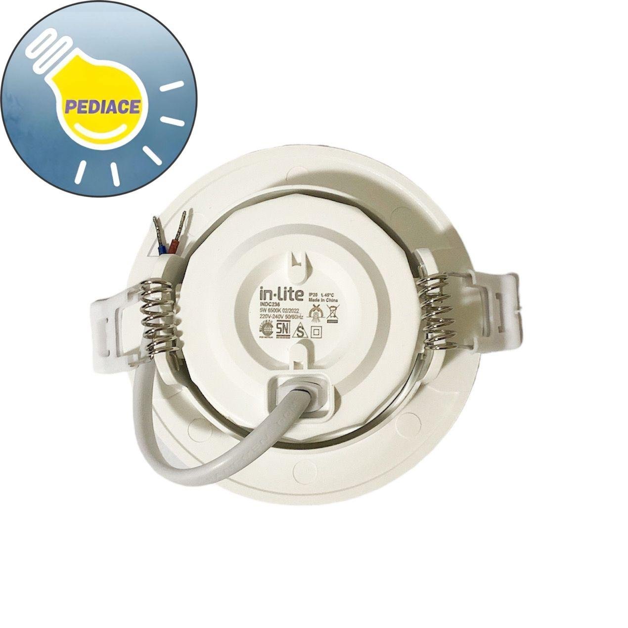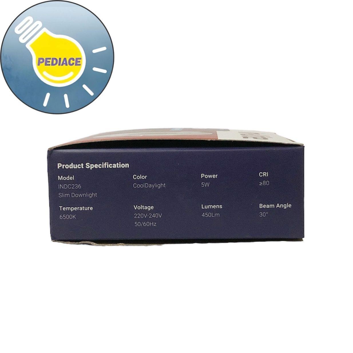 Lampu Slim Downlight 5 WATT Inbow INLITE INDC236 – COOL DAYLIGHT 6500K – Model: INDC236 Slim Downlight – Power: 5 watt – Warna COOL DAYLIGHT (Putih) 6500K -Lumens: 450 Lm -Beam Angle: 30? -CRI: gt;80 -Voltage: 220V – 240V 50/60Hz -Hole Size / Lubang Plafon: 70 mm -Size: ? 90 x 23.5 mm -Non-Dimmable Note: Lampu akan di tes dan dipacking bubble serta dus sebelum dikirim