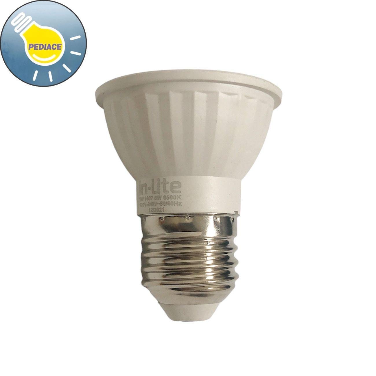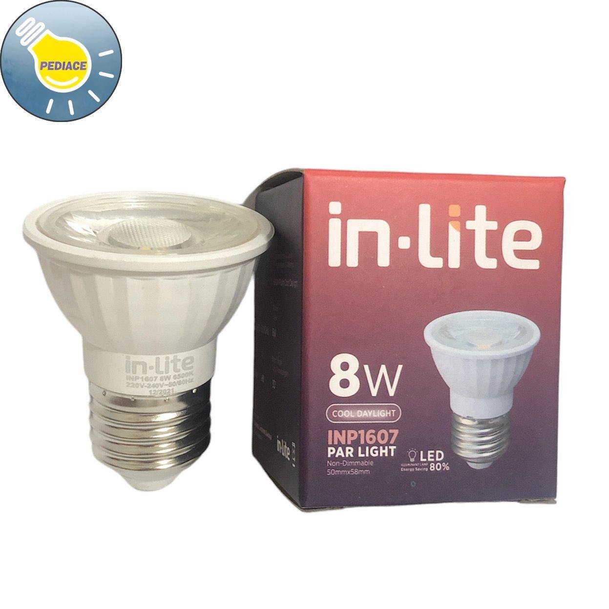 Lampu Halogen LED In-Lite Sorot 8w mangkok COB kaki putar (E27) In-Lite Led E27 (Kaki Putar / E27) mempunyai daya kekuatan hingga 25ribu jam pemakaian serta dapat menghemat hingga 80% energy penggunaan dibandingkan dengan lampu2 generasi sebelumnya, seperti lampu Halogen MR16 20w/50w. Sangat cocok digunakan untuk dekorasi seperti lampu hias,lampu gantung maupun lampu dinding dan sebagainya. Lampu In-Lite Led E27 8W, disertai dengan spesifikasi sbb: Model : INP1607 Warna : cooldaylight /6500K Kelvin :6500K Voltage : 220V-240V Lumens Warm White: 650lm Dimmable : No Fitting : E27 Size(mm) : 50 x 58 Keunggulan : Tidak mudah pecah dan tidak mudah panas.Mempunyai hasil penyinaran yang tinggi dan daya listrik yang rendah. *Free bubble wrap packing