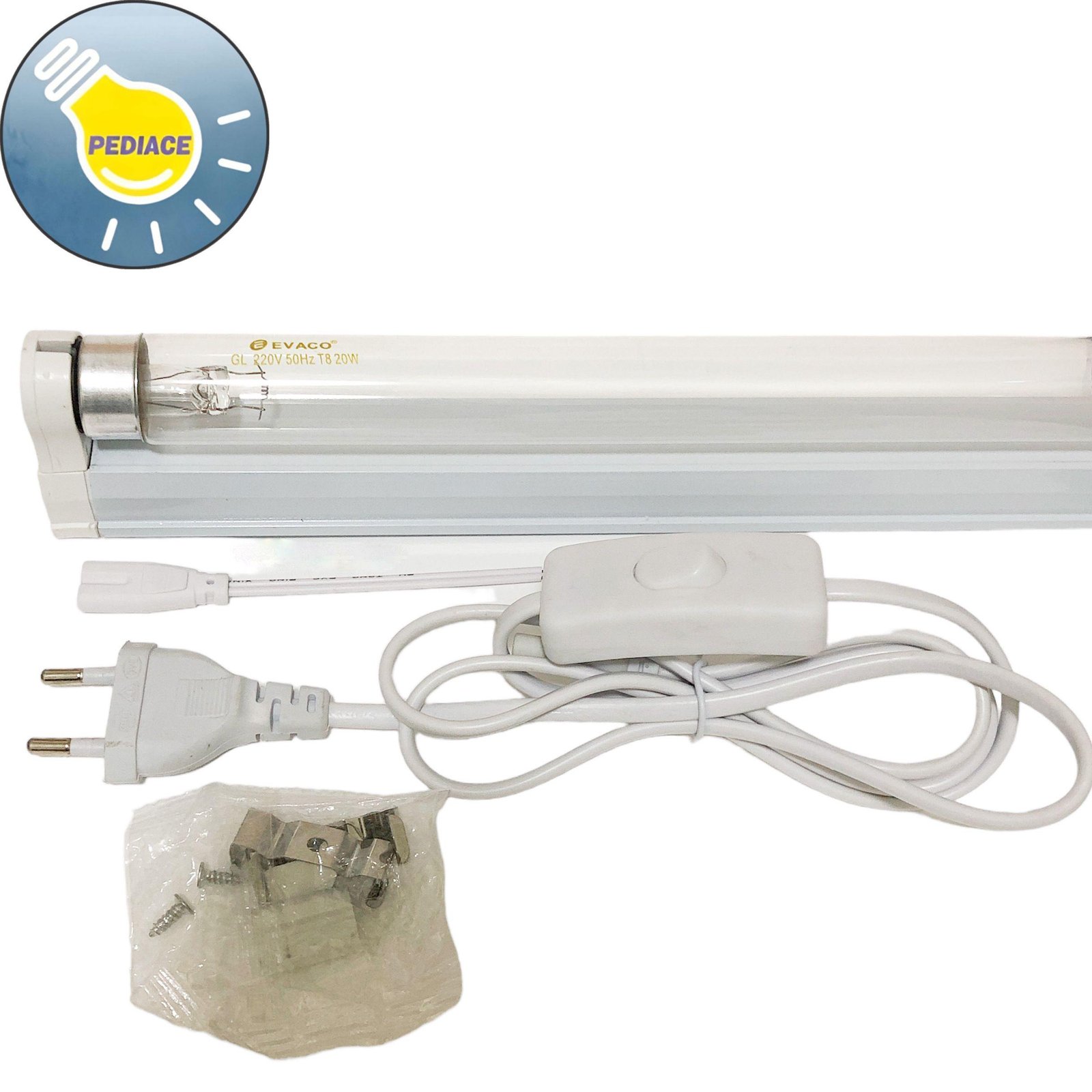 Lampu T8 UV Germicidal 20W Filter Air/Kuman EVACO SET KAP KABEL ON/OFF