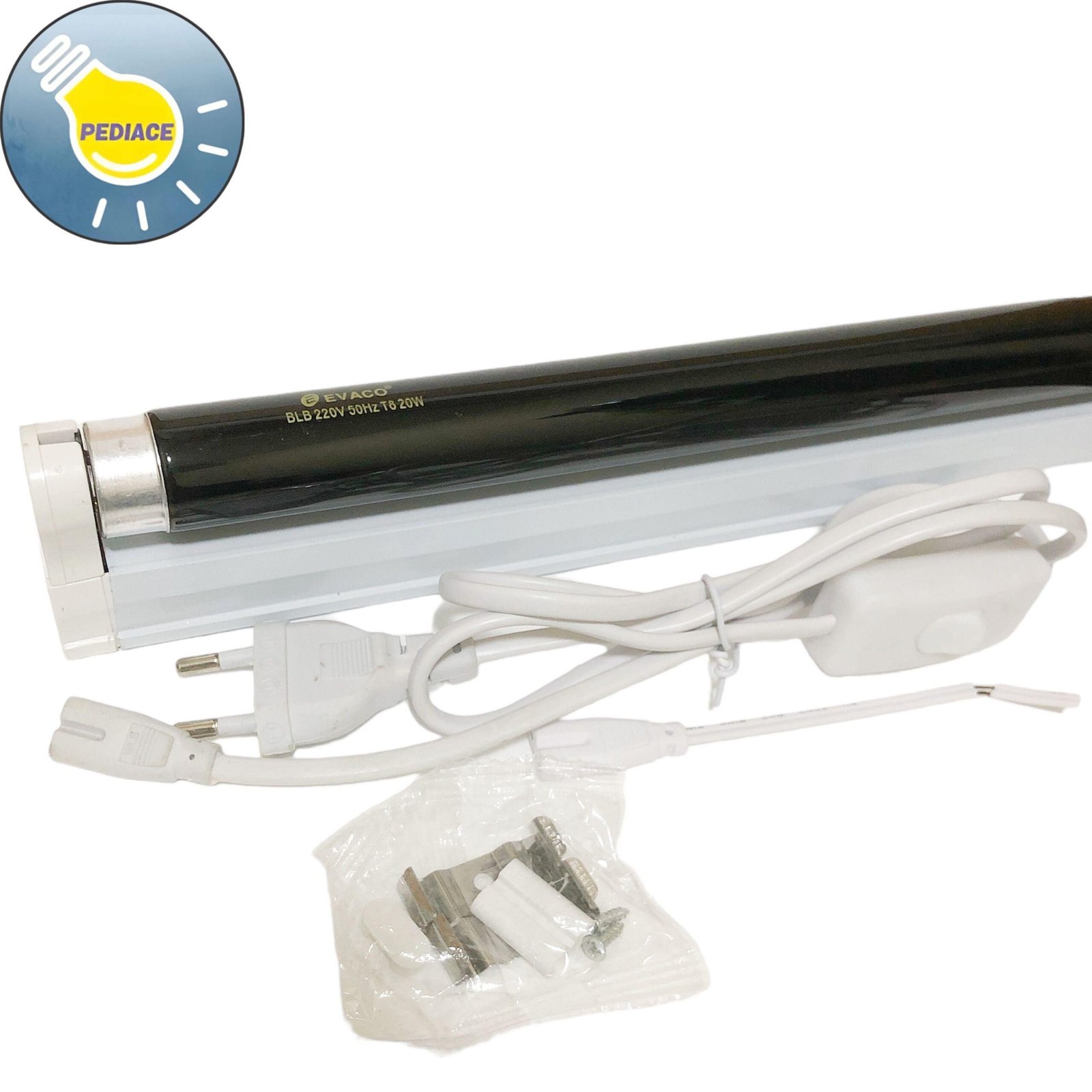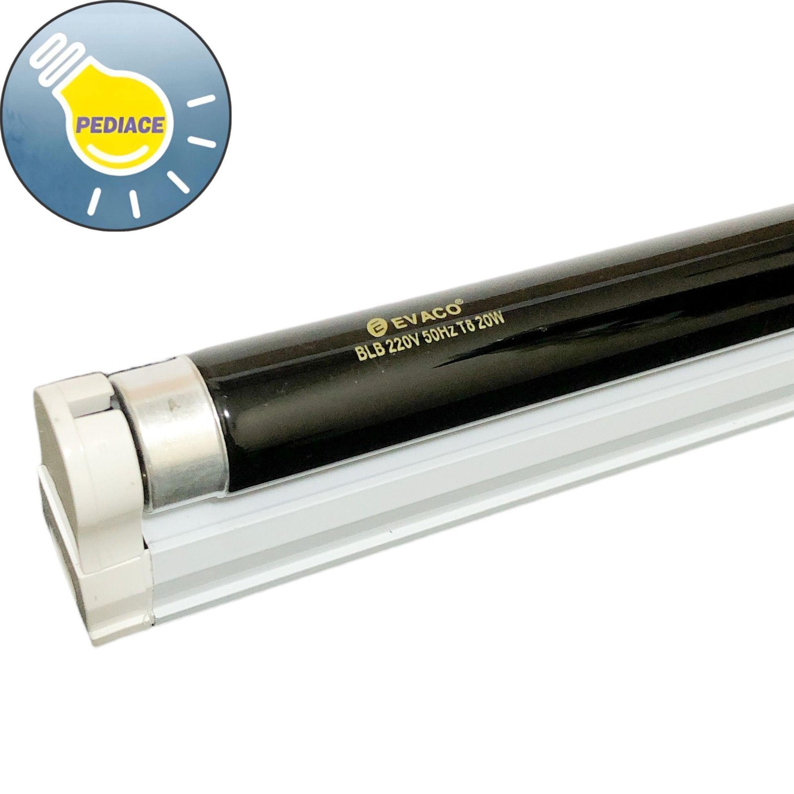Lampu UV UVA T8 BLB 20W SET KOMPLIT KABEL ON/OFF 61.5cm Sensor Uang Harga yg tertera adalah harga 1set komplit yg terdapat – 1pcs lampu T8 uang Uv/Ultraviolet 20watt Evaco (panjang lampu -+ 60.5cm) – 1pcs Housing 20watt (panjang kap -+ 61.5cm) Panjang keseluruhan termasuk rumah/kap nya -+ 61.5cm – 1pcs Colokan Kabel On/Off (panjang -+ 120cm) Tegangan 220V Common BLB Blacklight Applications Fraud Detection ID Inspection Organic Waste Detection Stage/Studio Special Effects Mineral Analysis Is UV-A Dangerous? UV-A is relatively low power, longer wavelength ultraviolet light and is considered the safest of the UV spectra. It is still prudent to avoid long exposure times, especially if looking directly at the light. UV-A light is not usually utilized for germicidal lighting purposes, as the exposure times to damage microbes are very high. However, there are some light fixtures that utilize UV-A for low levels of disinfection. The benefit is that the light can be used unshielded in occupied spaces. This is a very uncommon use for UV-A, though, as UV-C lamps and even UV-B light bulbs have more germ-killing efficacy. Note: lampu akan dicoba terlebih dahulu dan dibungkus bubble wrap sebelum dikirim- What is the Difference Between BL and BLB Blacklights? The fluorescent blacklight category consists of bulbs with phosphors that create a peak wavelength at 365 nanometers. This part of the spectrum is called UV-A, and it is just inside the boundary with visible light. However, UV-A bulbs are considered ultraviolet bulbs as their peak wavelength is in the ultraviolet part of the spectrum. Blacklights have two different designations, which you can usually find at the end of the part number for a given bulb. These designations are BL and BLB. Both of them emit the same UV-A wavelength, but one blocks out most visible light where the other does not.