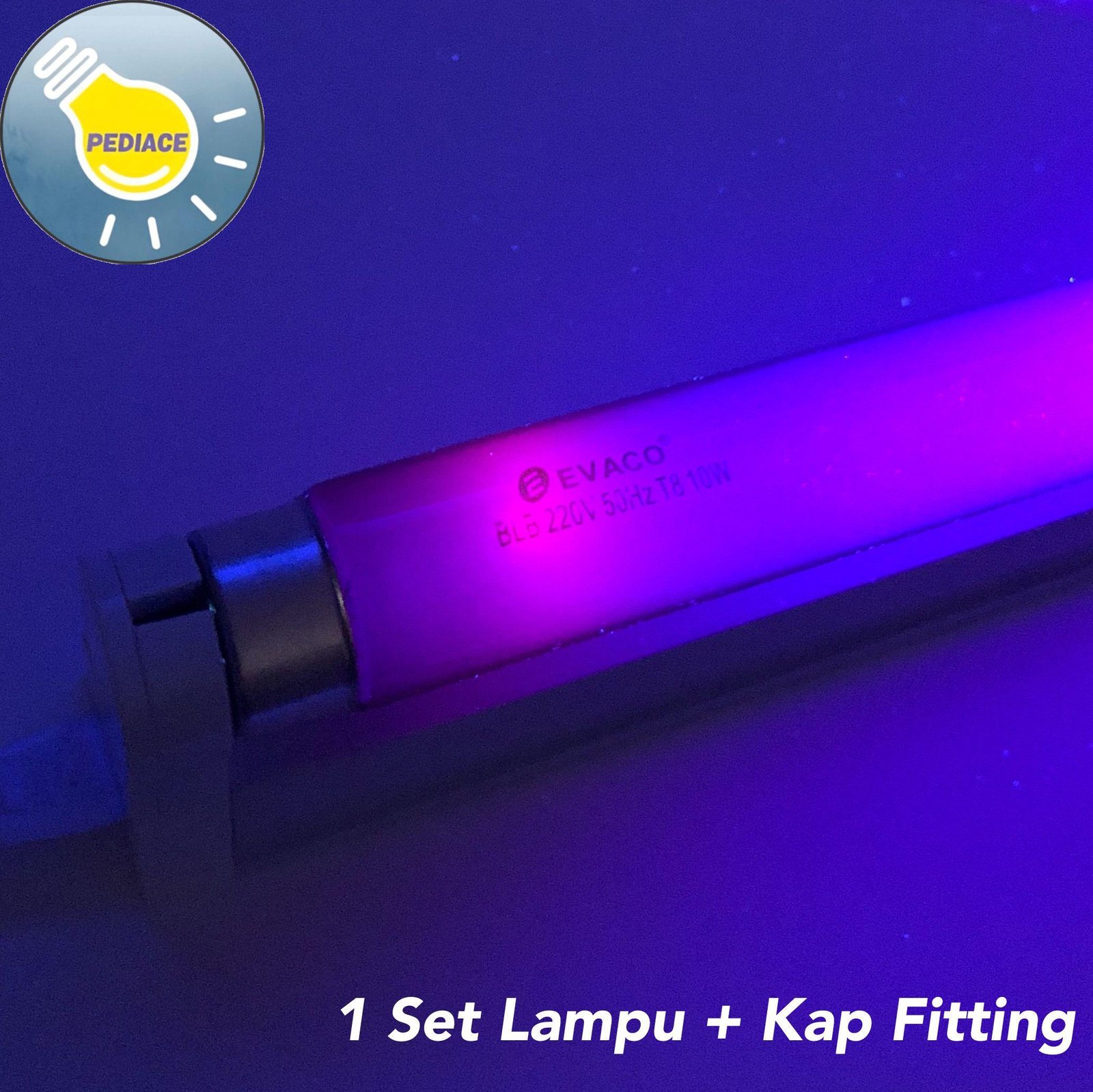 Lampu UV UVA UV-A T8 Ultraviolet BLB 10W SET KOMPLIT 36cm sensor uang Harga yg tertera adalah harga 1set komplit yg terdapat 1pcs lampu t8 uang Uv/Ultraviolet 10watt Evaco (panjang lampu -+ 35cm) 1pcs Housing 10watt (panjang kap -+ 36cm) Panjang keseluruhan termasuk rumah/kap nya lebih kurang 36cm Tegangan 220V Common BLB Blacklight Applications Fraud Detection ID Inspection Organic Waste Detection Stage/Studio Special Effects Mineral Analysis Is UV-A Dangerous? UV-A is relatively low power, longer wavelength ultraviolet light and is considered the safest of the UV spectra. It is still prudent to avoid long exposure times, especially if looking directly at the light. UV-A light is not usually utilized for germicidal lighting purposes, as the exposure times to damage microbes are very high. However, there are some light fixtures that utilize UV-A for low levels of disinfection. The benefit is that the light can be used unshielded in occupied spaces. This is a very uncommon use for UV-A, though, as UV-C lamps and even UV-B light bulbs have more germ-killing efficacy. Note: lampu akan dicoba terlebih dahulu dan dibungkus bubble wrap sebelum dikirim- What is the Difference Between BL and BLB Blacklights? The fluorescent blacklight category consists of bulbs with phosphors that create a peak wavelength at 365 nanometers. This part of the spectrum is called UV-A, and it is just inside the boundary with visible light. However, UV-A bulbs are considered ultraviolet bulbs as their peak wavelength is in the ultraviolet part of the spectrum. Blacklights have two different designations, which you can usually find at the end of the part number for a given bulb. These designations are BL and BLB. Both of them emit the same UV-A wavelength, but one blocks out most visible light where the other does not.
