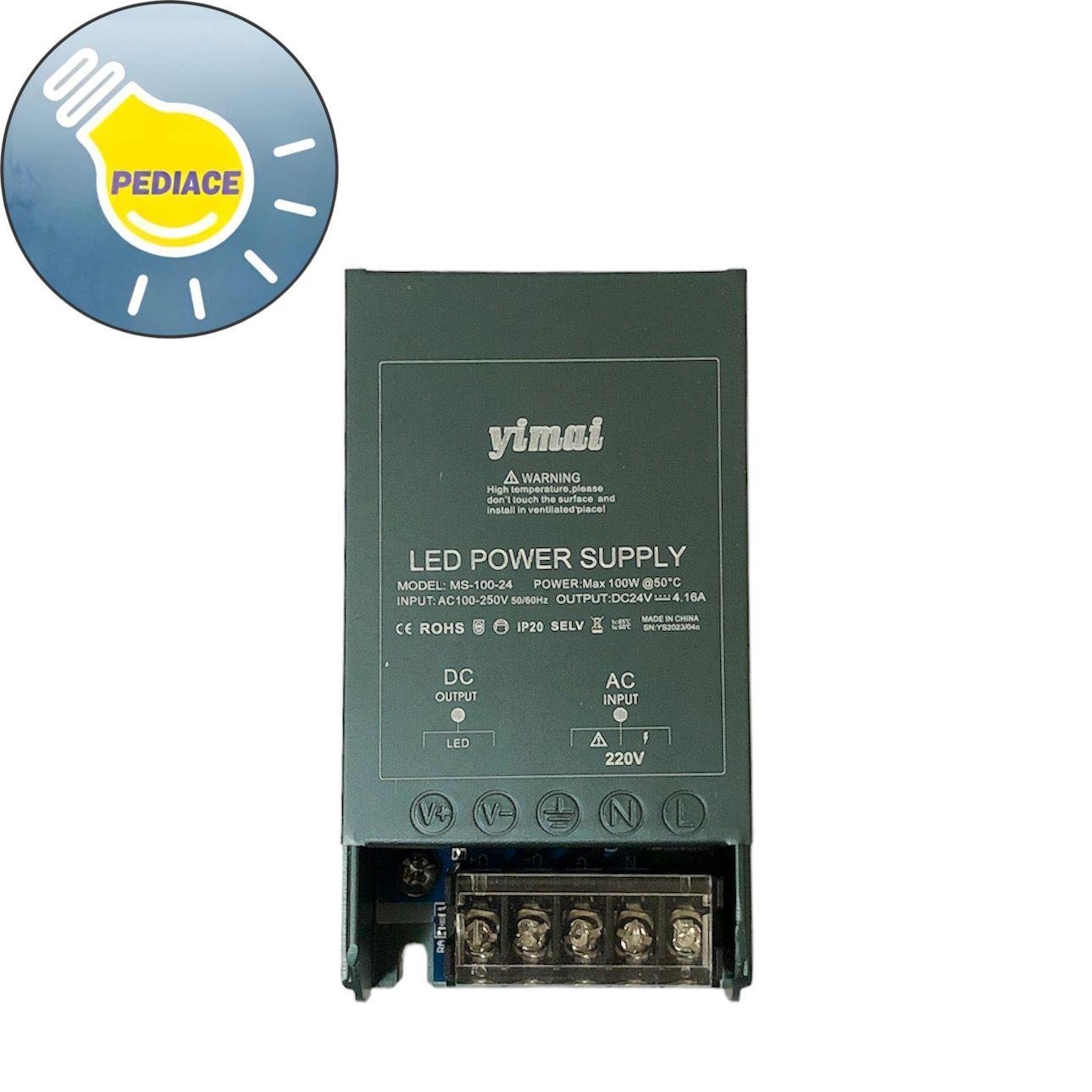 LED Power Supply Yimai MS-100-24 Switching Led 24V 100W 4.16A Spesifikasi: *Model: MS-100-24 *Sumber tegangan AC input : 100-250v ac 50/60hz *Tegangan Output : DC24V–4.16A *Daya maksimal : 100W (100watt) *Dimensi: 88*50*23mm Power supply akan dites terlebih dahulu sebelum dikirim