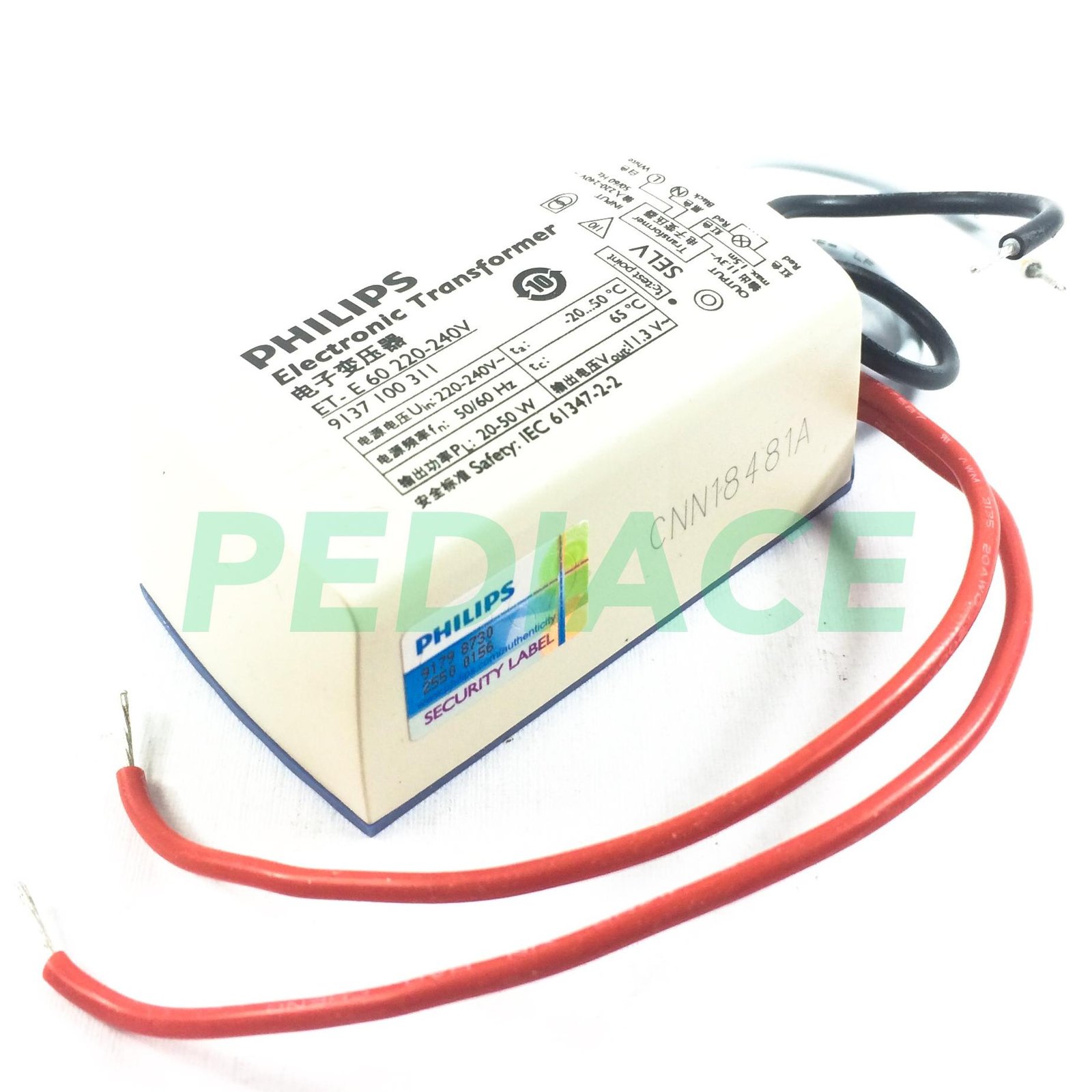 PHILIPS BALLAST TRAFO ELECTRONIC TRANSFORMER 60W ET-LED 60/220-240V Spesifikasi: – Merk: PHILIPS – Inverter dari 220V ke 12V utk lampu LED 12V (Input 220V) (Output 12V) – Travo/Ballast/Electronic transformer 2-60w – Untuk lampu halogen dan LED – NOTE : Support hingga 12 buah lampu MR16 5W (MAX 60 Watt tidak bisa lebih) * Ballast akan di tes dan packing bubble wrap serta dus sebelum dikirim #39;