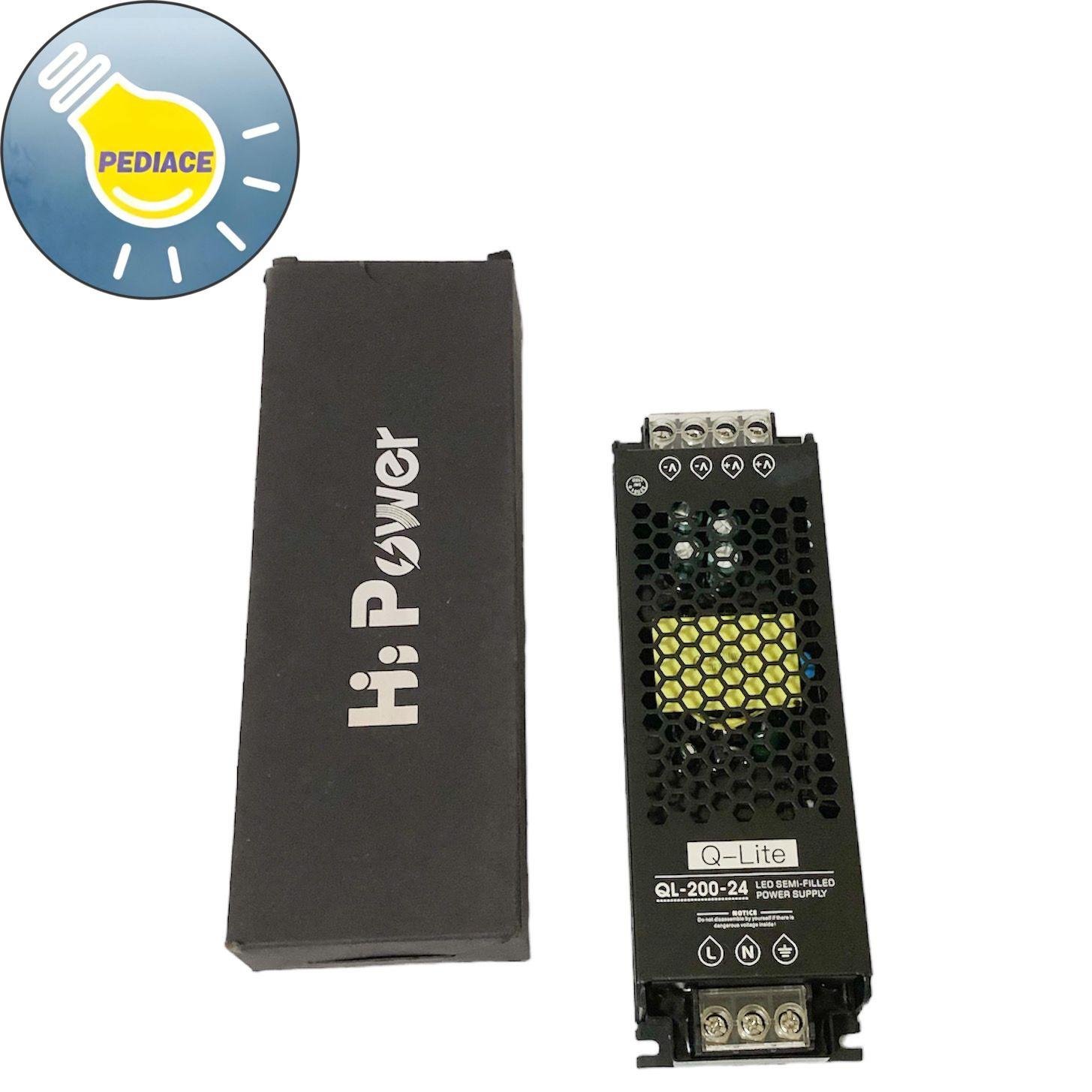 Power Supply Adaptor Hi Power Q-Lite 24V 200W 8.3A Switching Led Spesifikasi: *Model: QL-200-24 *Sumber tegangan AC input : 190-240vac 50/60hz *Tegangan Output : 24V±0.5V *Daya maksimal : 200W (200watt) *Dimensi: ± 19x6x2.9cm Berfungsi untuk merubah tegangan AC 190-240 Volt menjadi DC 24Volt Bisa digunakan untuk power supply Lampu LED Strip, CCTV, LED spot 24v,lampu kolam, Alat akses kontrol yang menggunakan sumber 24VDC dan lainnya Power supply akan dites terlebih dahulu sebelum dikirim