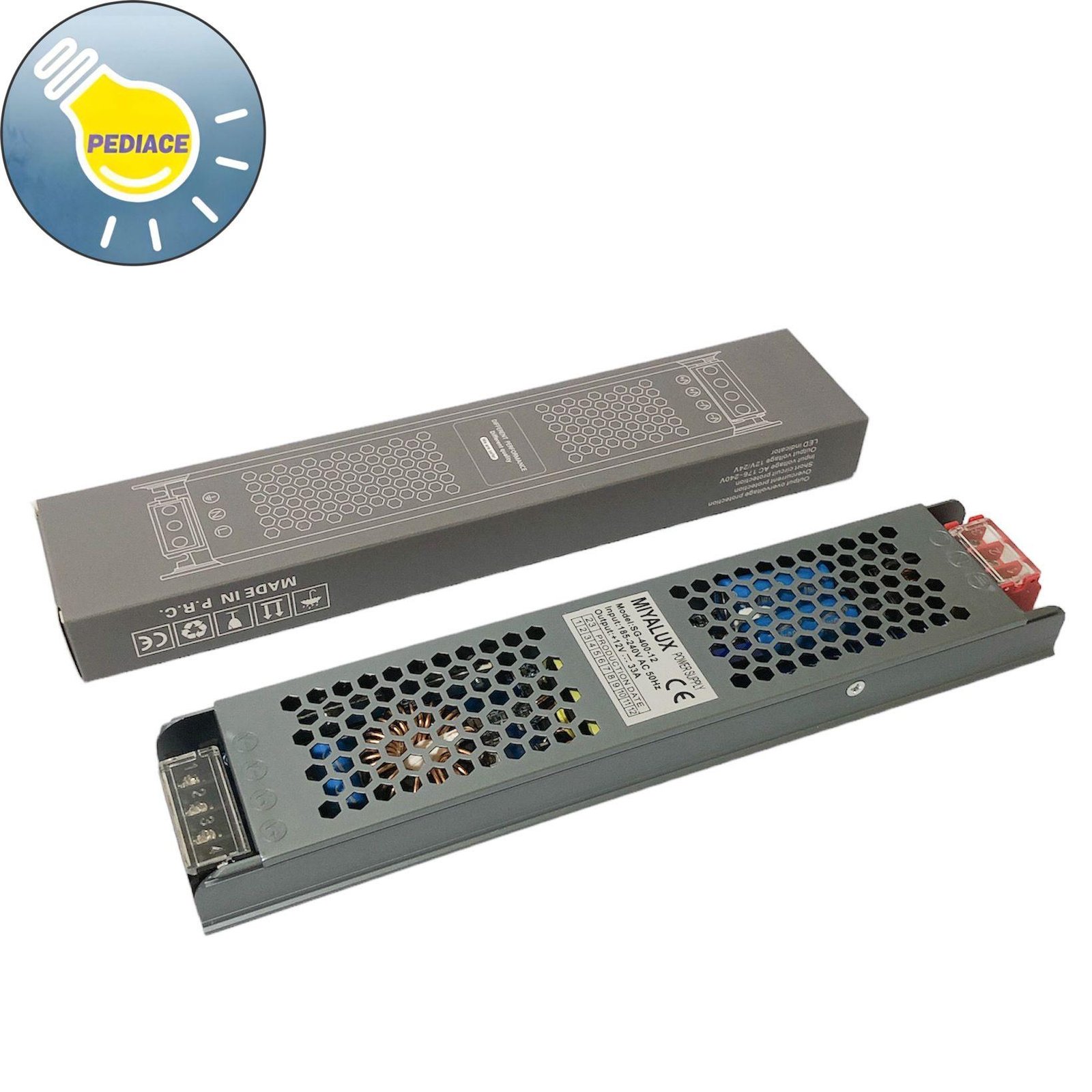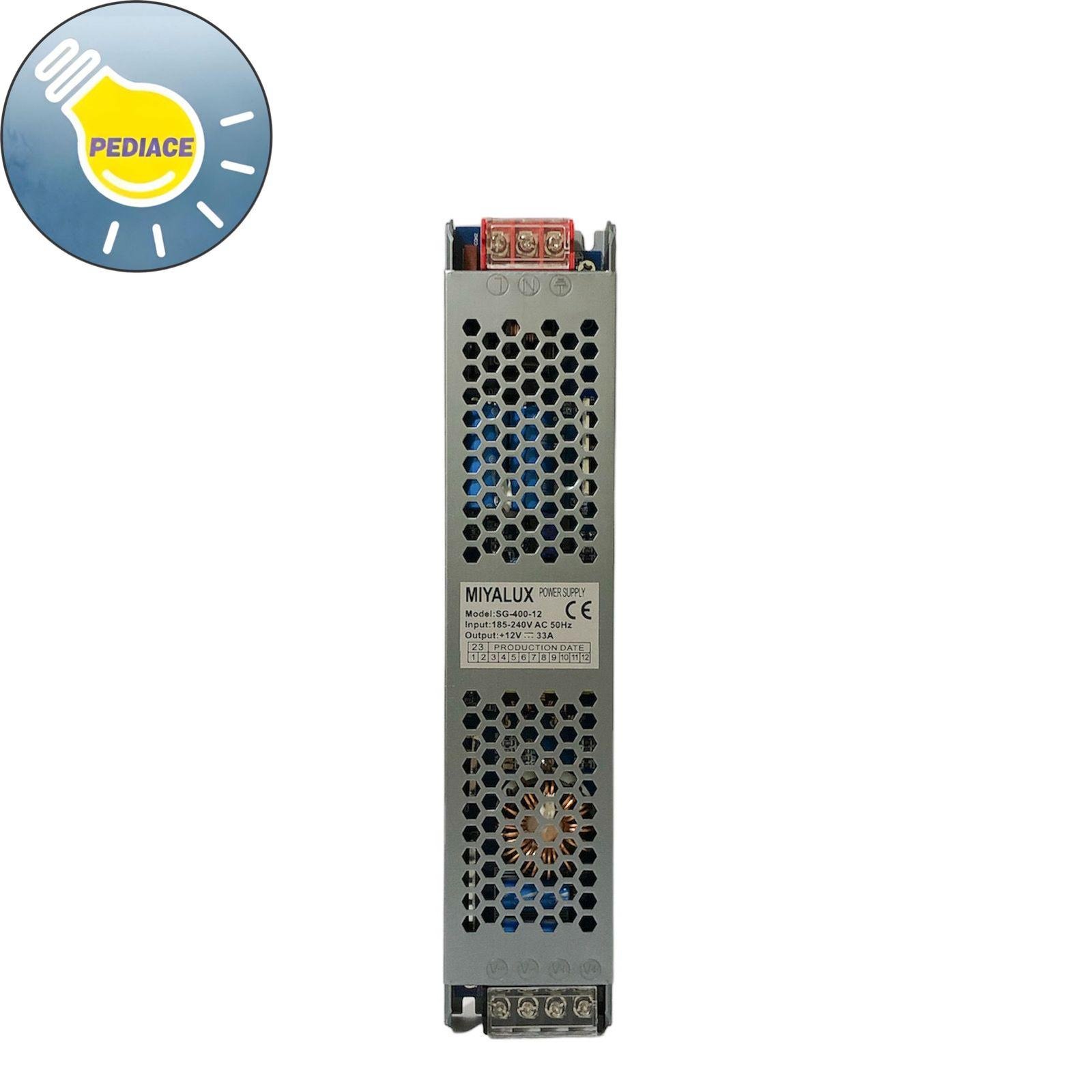 Power Supply Adaptor MIYALUX SG-400-12 Switching Led 12V 400W 33A Spesifikasi: *Model: SG-400-12 *Sumber tegangan AC input : 185-240v ac 50hz *Tegangan Output : +12V–33A *Daya maksimal : 400W (400watt) *Dimensi: ± 23.9x5x2.4cm Berfungsi untuk merubah tegangan AC 220 Volt menjadi DC 12Volt Bisa digunakan untuk power supply Lampu LED Strip, CCTV, LED spot 12v,lampu kolam, Alat akses kontrol yang menggunakan sumber 12VDC dan lainnya Power supply akan dites terlebih dahulu sebelum dikirim
