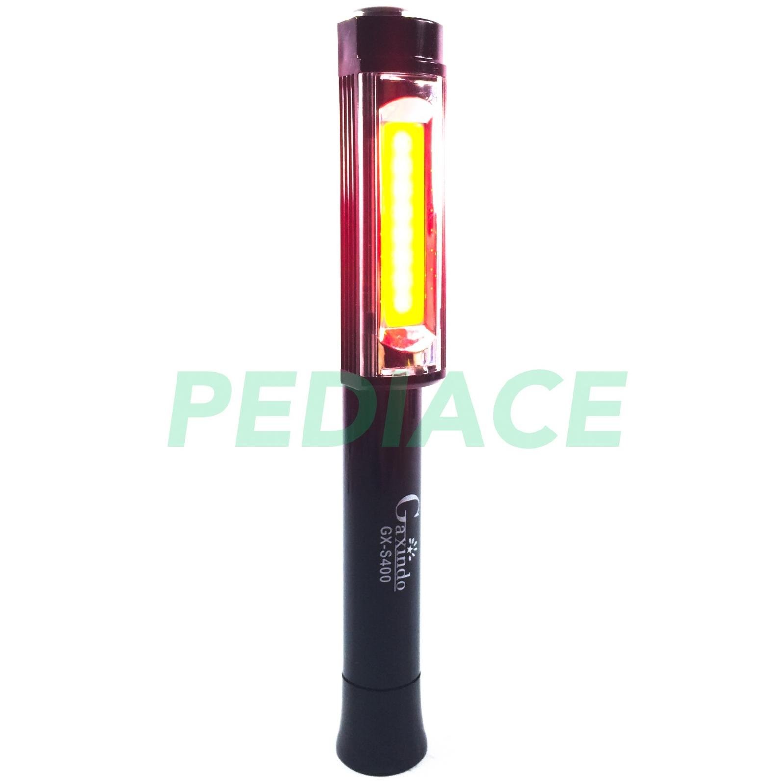 Senter Baterai LED COB 5 Watt 3 Fitur Cahaya Working Light Magnet Besi – Merk: GAXINDO – Model: GX-S400 – Super bright white COB 1+ 1(5W) – Ideal for car, home and outdoor use – Require 3 AA Batteries ( Belum termasuk / Not included) – Simple on/off button – 3 Fitur Cahaya: cahaya terang, cahaya sangat terang, cahaya merah kedap-kedip – Memiliki magnet tempel besi dibagian penutup baterai yang bisa dipakai untuk memudahkan pekerjaan ditempat gelap tanpa harus memegang senter secara terus-menerus * Senter akan di tes dan packing bubble serta dus sebelum dikirim * Produk Terkait: – Baterai AA 3 PCS Energizer: https://www.tokopedia.com/pediace/baterai-aa-lr6-1-5v-energizer-alkaline-battery-batere-batre-3pcs – Batrai AA 6 PCS Energizer: https://www.tokopedia.com/pediace/baterai-aa-lr6-1-5v-energizer-alkaline-battery-batere-batre-6pcs – Batrai AA 6 PCS Alkaline: https://www.tokopedia.com/pediace/baterai-aa-lr6-1-5v-alkaline-battery-batere-batre-6pcs