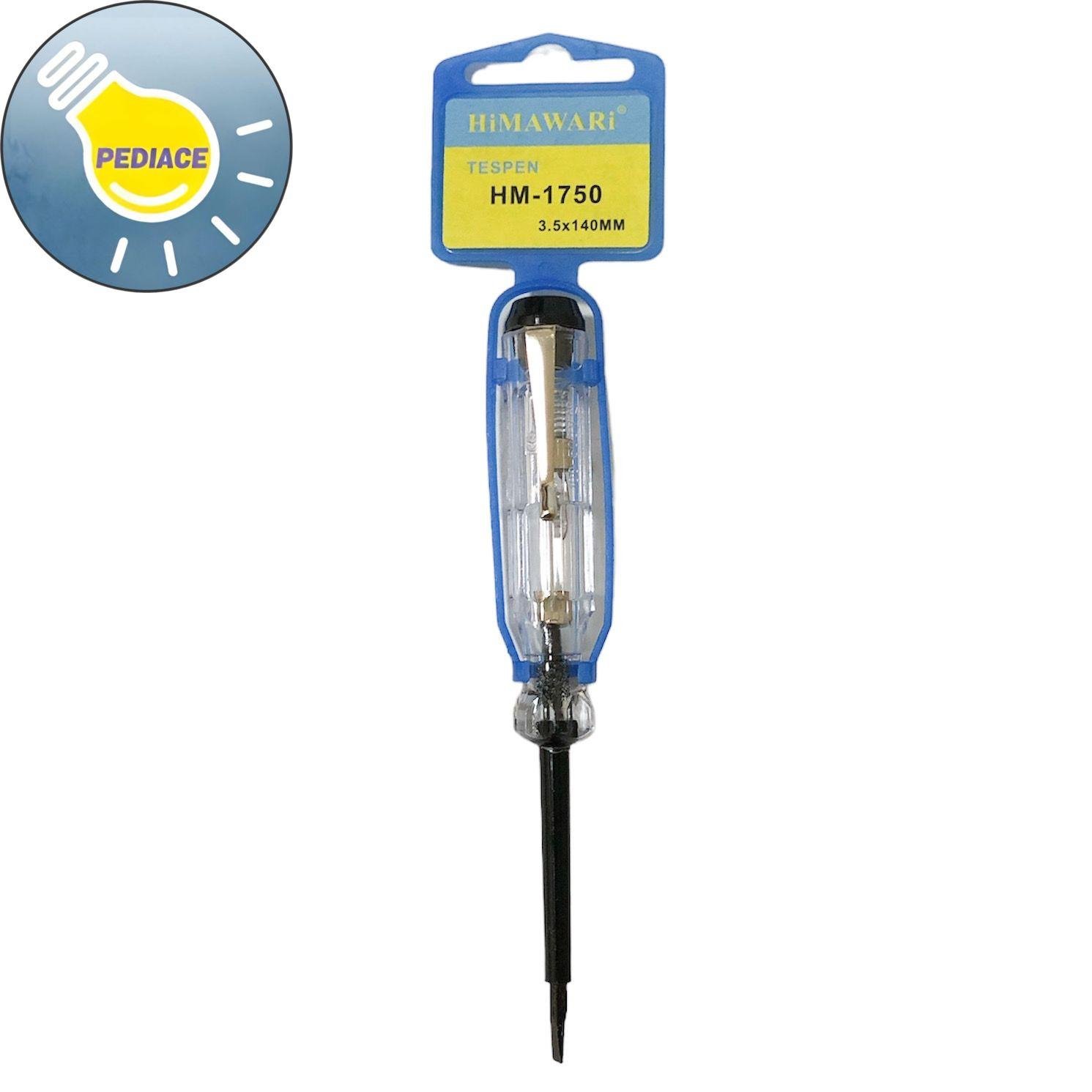 Testpen / Tespen HIMAWARI HM-1750 Obeng Listrik 100-500VAC Tes Listrik Tespen / Obeng Listrik Alat tes listrik Merk: Himawari Model: HM-1750 AC 100 sampai 500V 3.5x140mm Tespen dites dulu sebelum dikirim